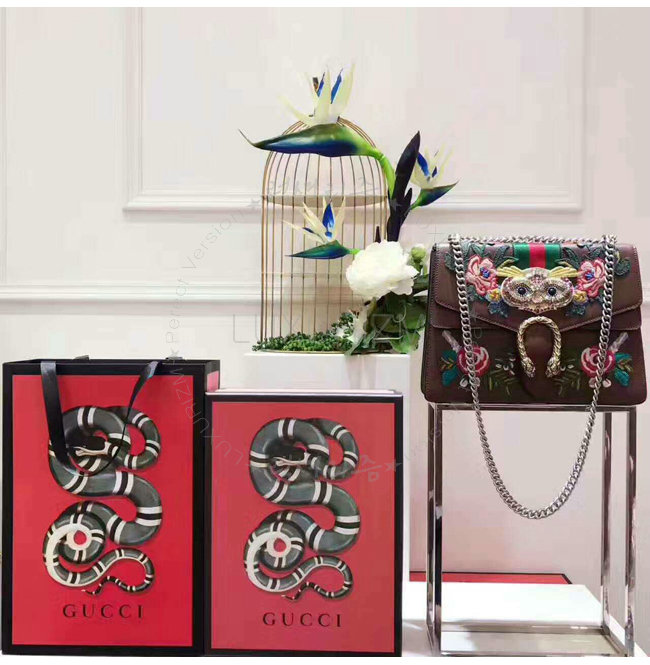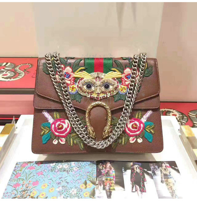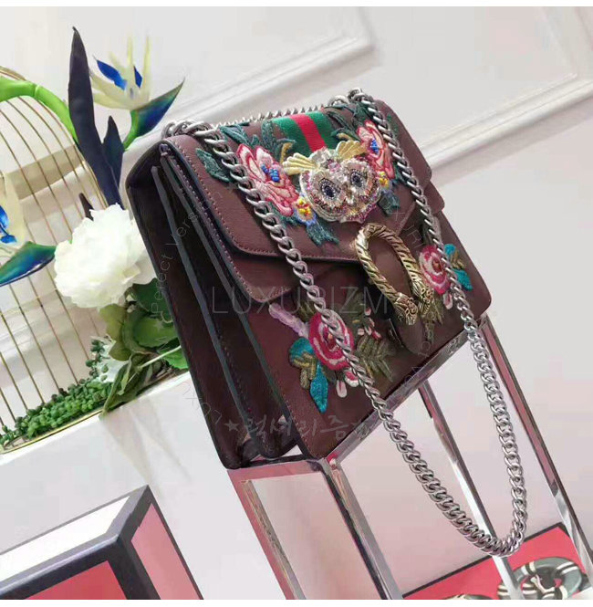 [스페셜오더]GUCCI-400235 2570 구찌 Dionysus 브라운 가죽 embroidered 숄더백