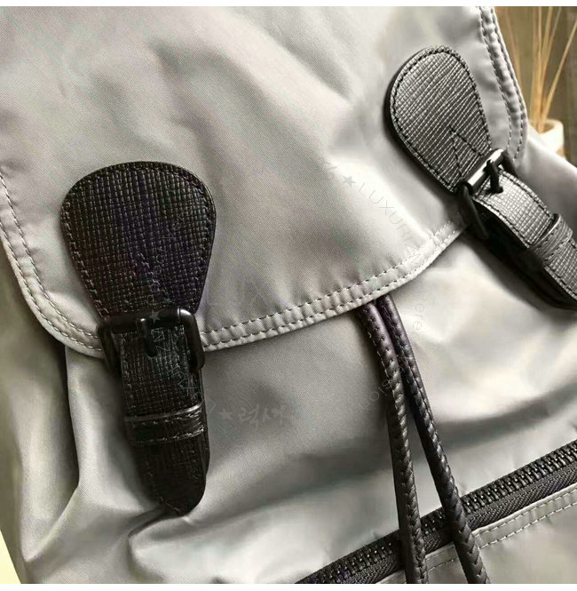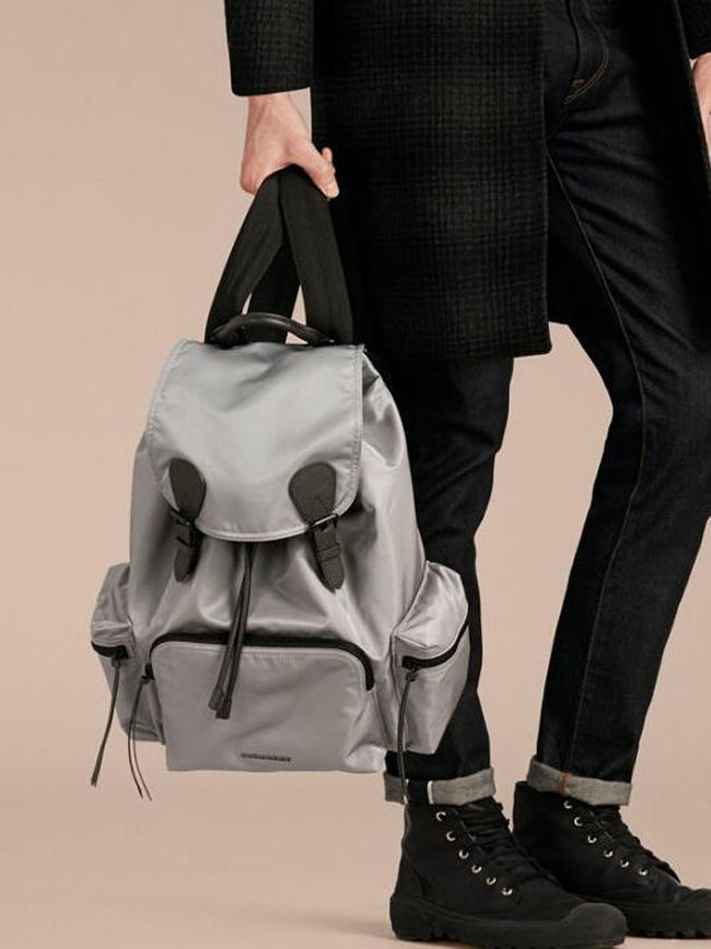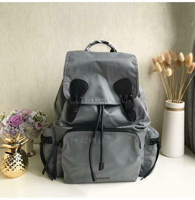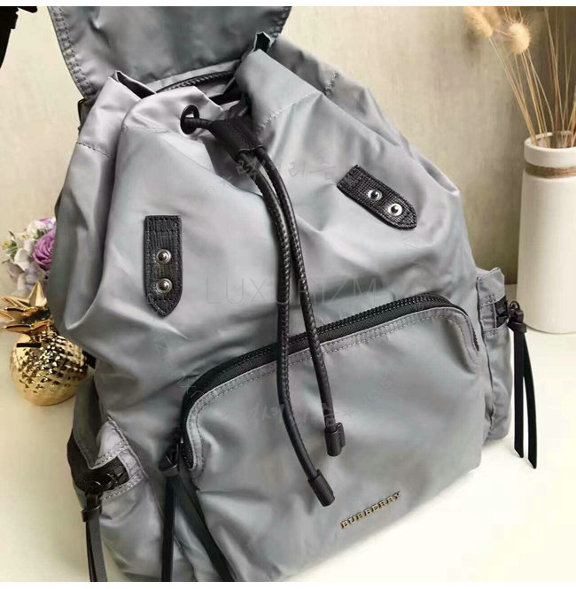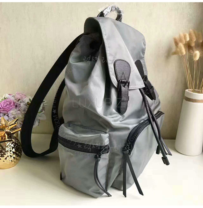 BURBERRY-40421701 버버리 라지 테크니컬 나일론 가죽 럭색 그레이