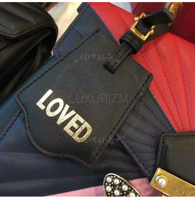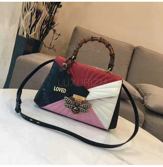 [스페셜오더]GUCCI-476531 8350 구찌 Queen Margaret 블랙 화이트 퀼트 가죽 탑 핸들 백