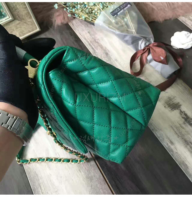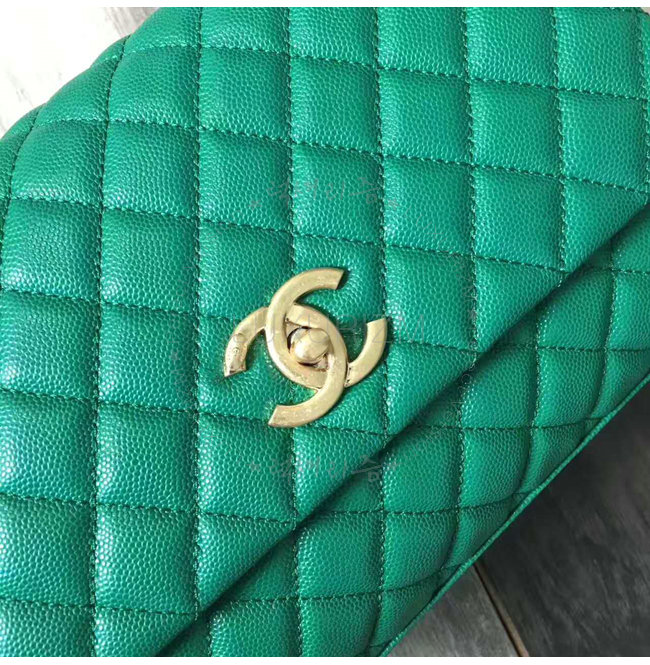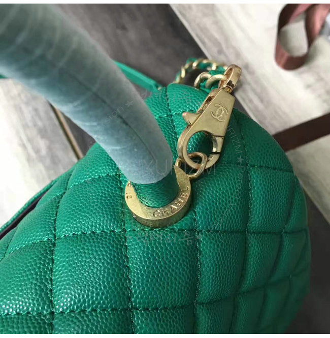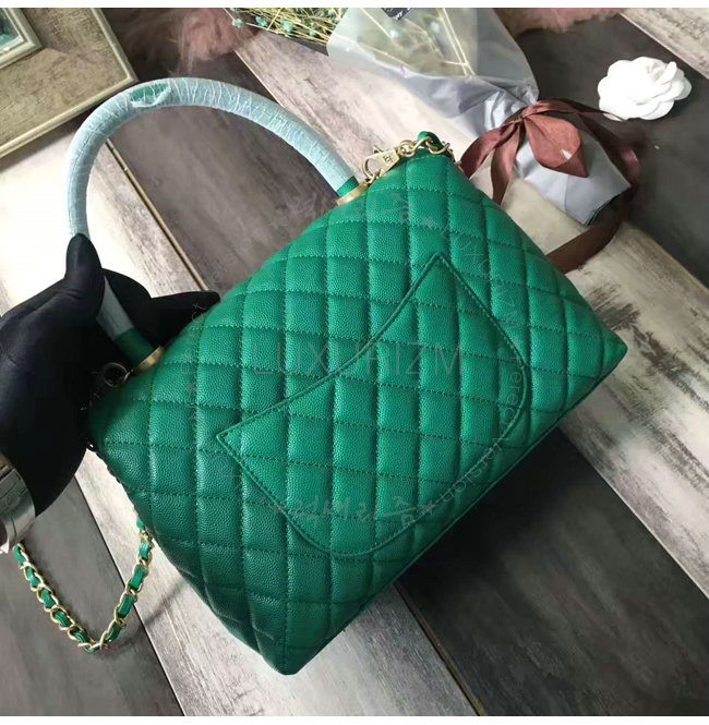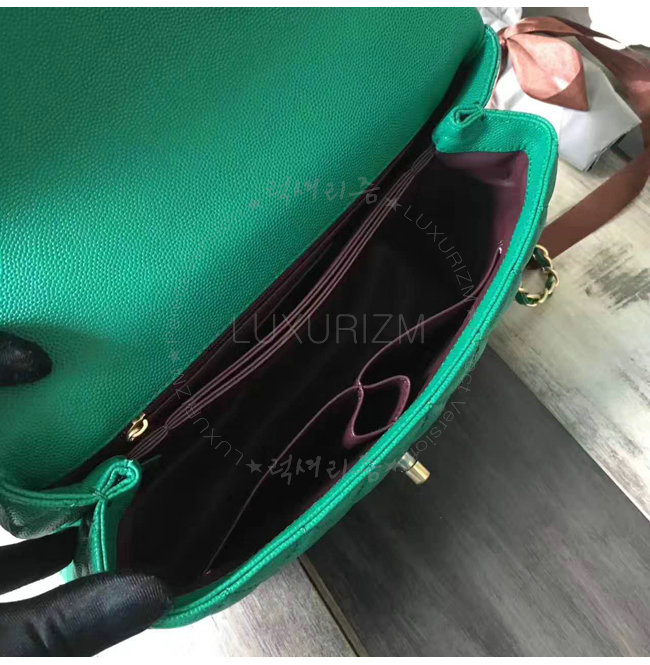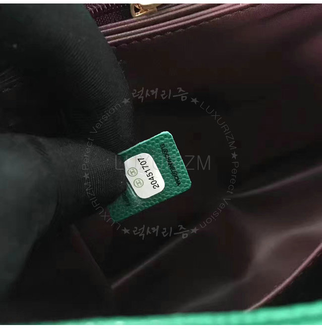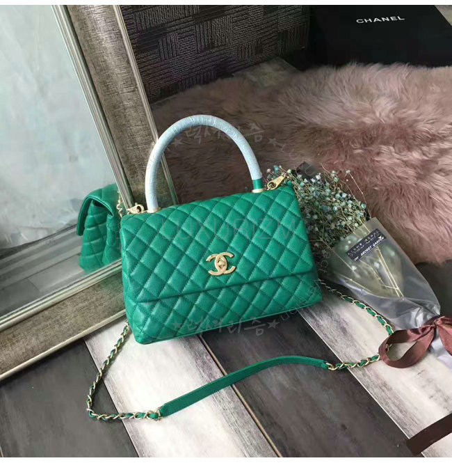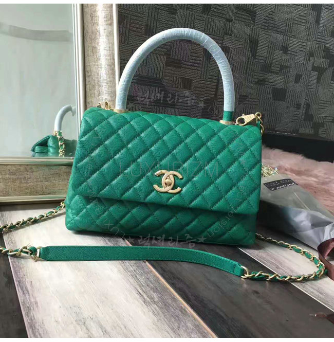 [스페셜오더]CHANEL-A92991 샤넬 카프스킨 골드 메탈 탑 핸들 플랩 백 그린