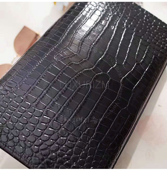 [스페셜오더]SAINT LAURENT-354119 생 로랑 블랙 은장 크로커다일 무늬 샤이니 가죽 클래식 미디엄 케이트 모노그램 생 로랑 태슬 사첼 백
