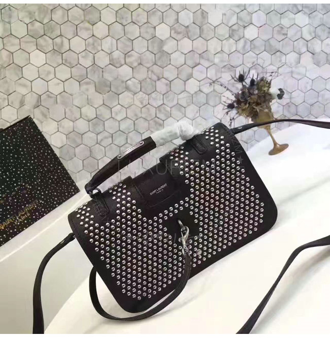 [스페셜오더]SAINT LAURENT-477481 생 로랑 블랙 가죽 미디엄 샤를로트 스터디드 메신저 백