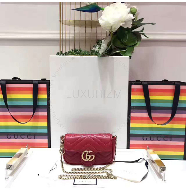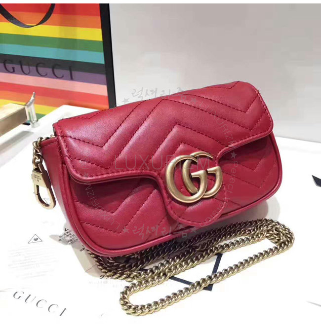 [스페셜오더]GUCCI-476433 6433 구찌 GG Marmont 마틀라세 가죽 슈퍼 미니 백 레드