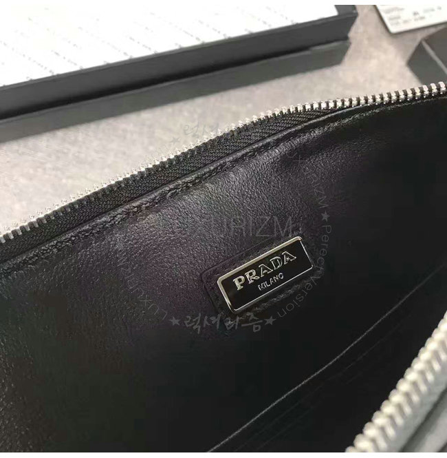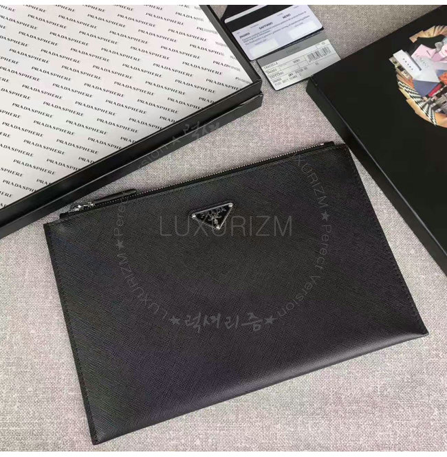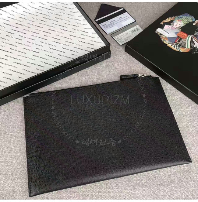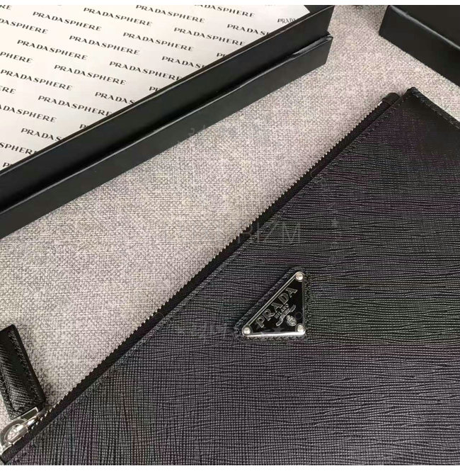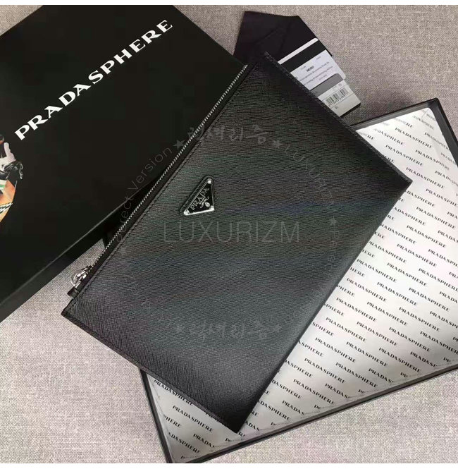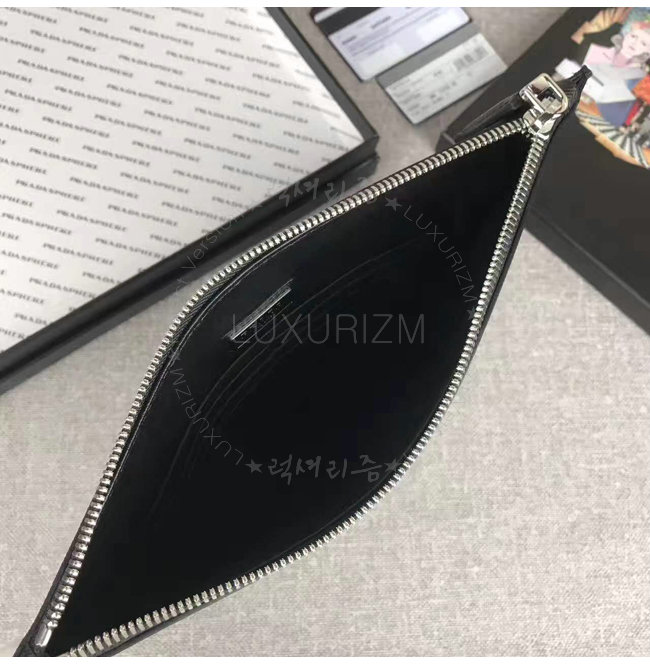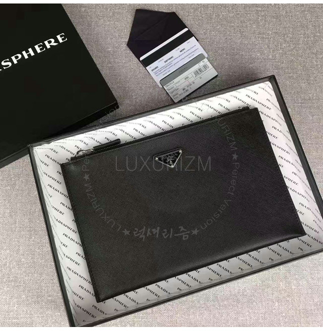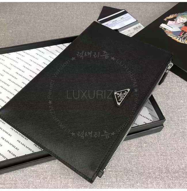 [스페셜오더]PRADA-2NG005 프라다 사피아노 가죽 트라이앵글 로고 트래블 키트 클러치 블랙