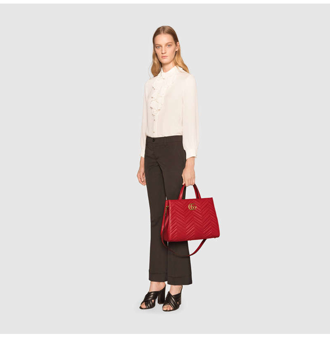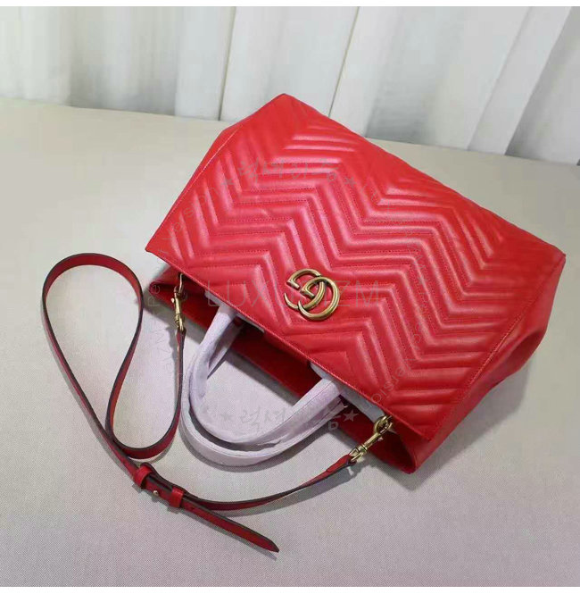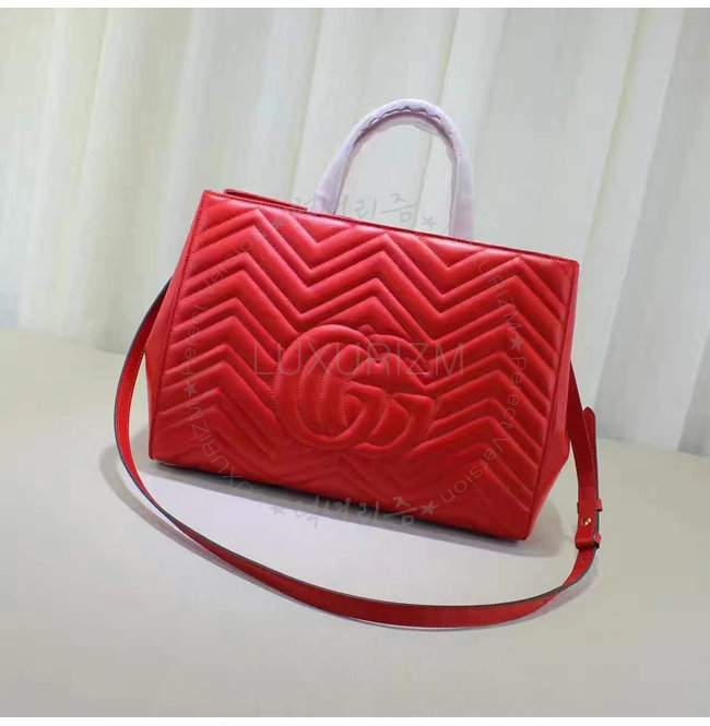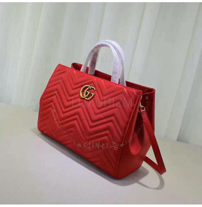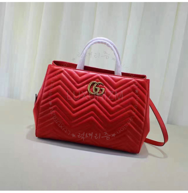 [스페셜오더]GUCCI-443505 6433 구찌 GG 마몽 마틀라쎄 미듐 탑 핸들백 레드