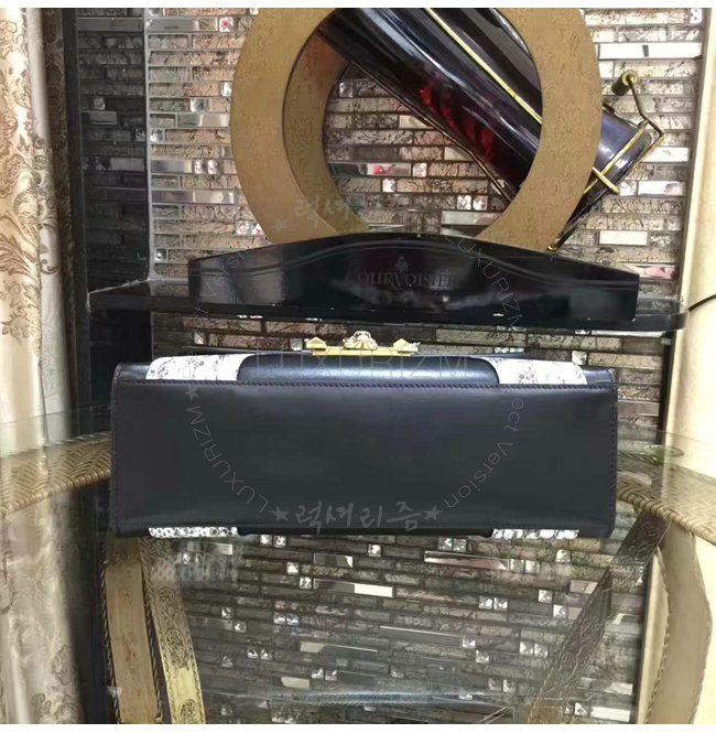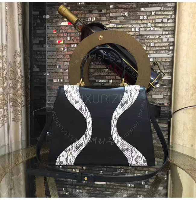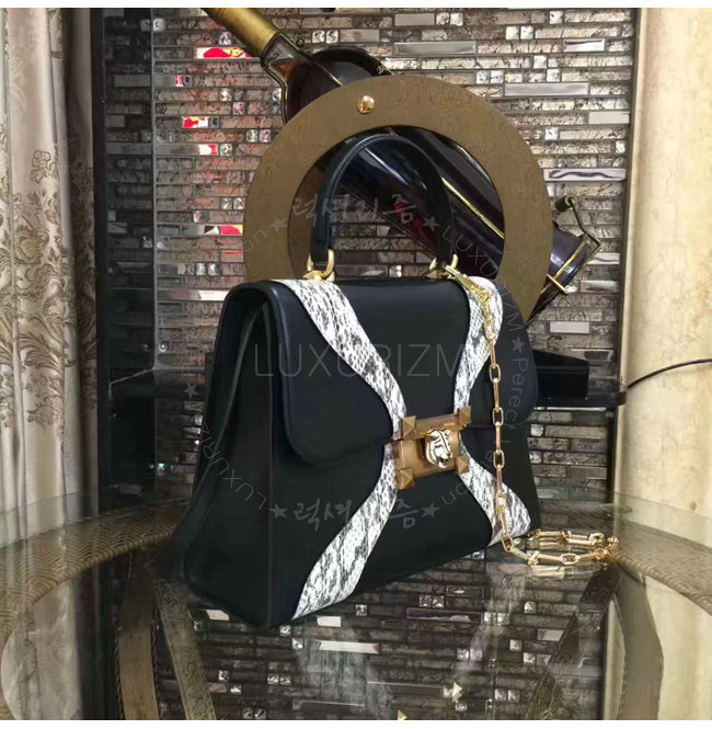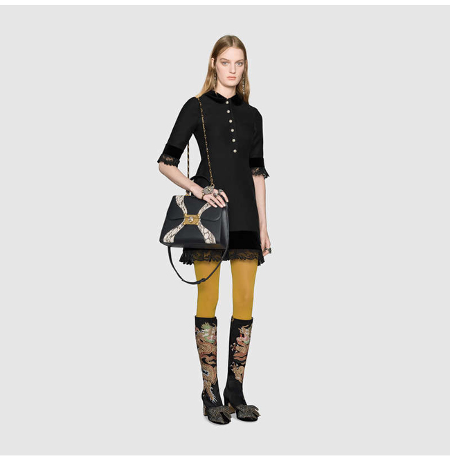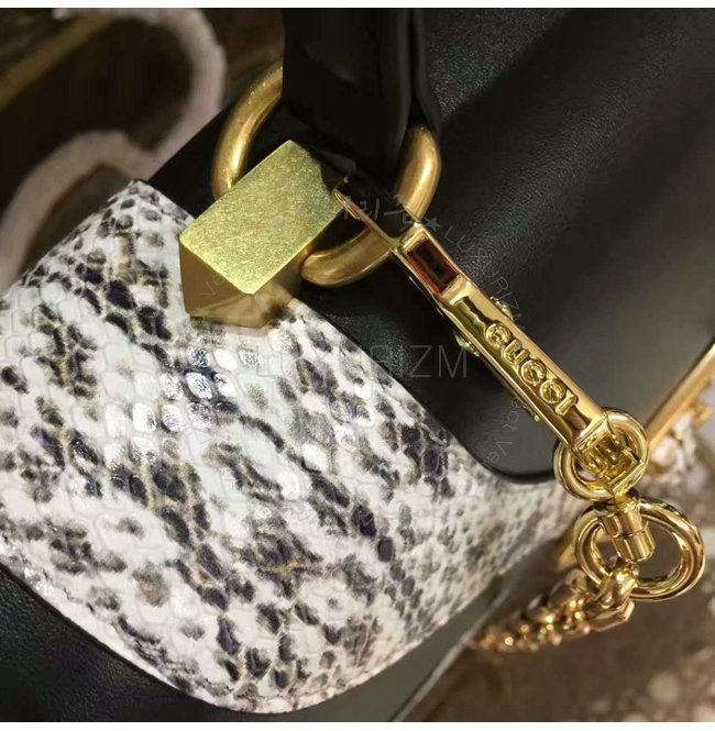 [스페셜오더]GUCCI-476435 8220 구찌 블랙 가죽 스네이크 스킨 트리밍 탑 핸들 백