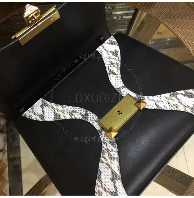 블랙 가죽 스네이크 스킨 트리밍