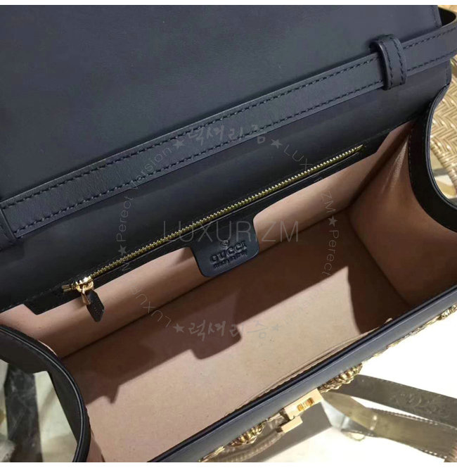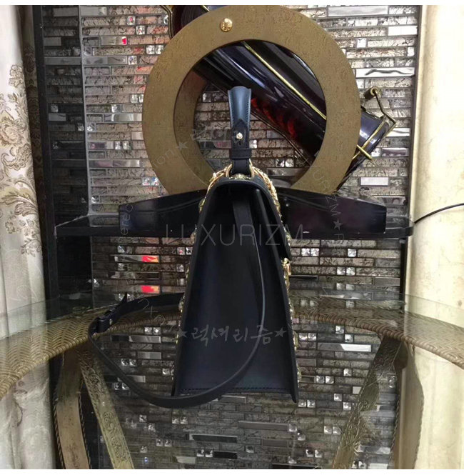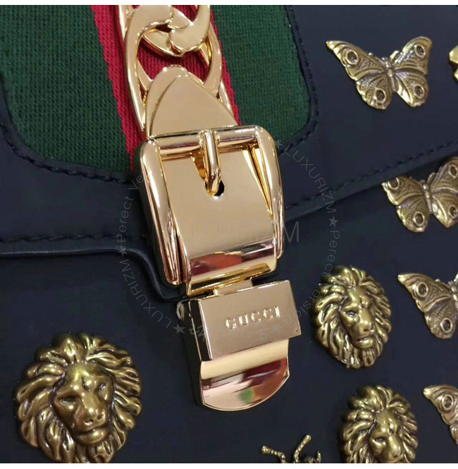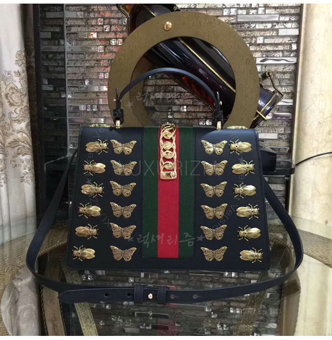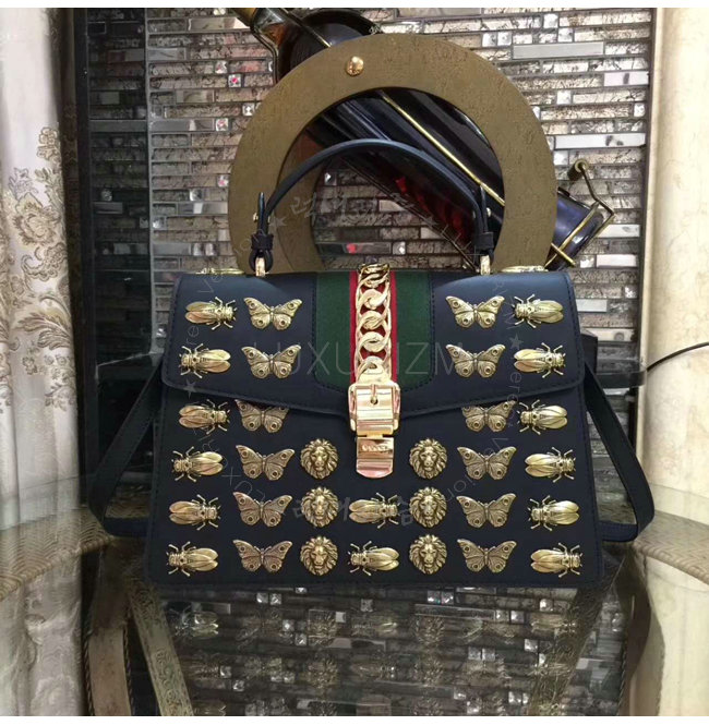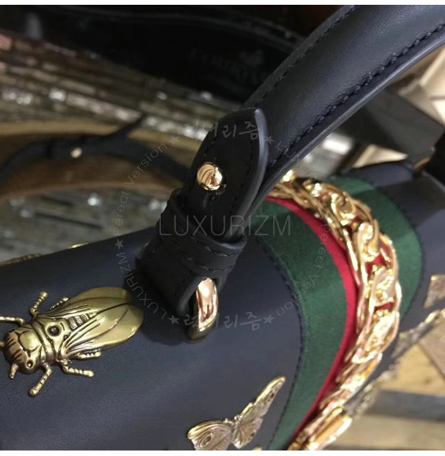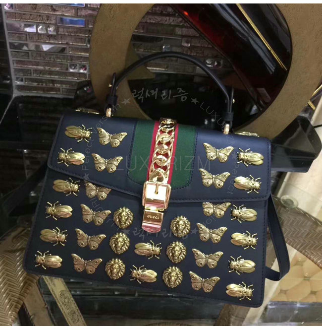 [스페셜오더]GUCCI-431665 1060 구찌 Gucci Sylvie 애니멀 스터드 가죽 탑 핸들 백 블랙