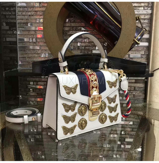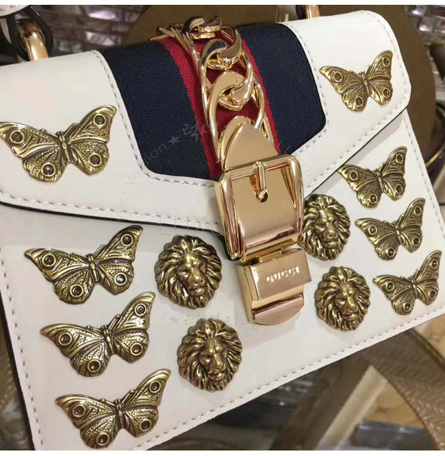 [스페셜오더]GUCCI-470270 8605 구찌 Sylvie 실비 가죽 애니멀 스터드 미니 숄더 백 화이트