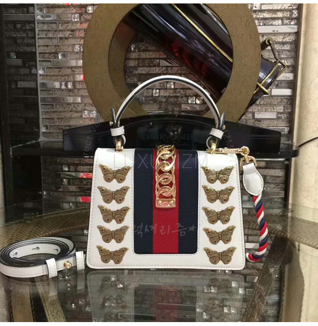 [스페셜오더]GUCCI-470270 8605 구찌 Sylvie 실비 미니 Web 디테일 골드 체인,버클 장식 탑 핸들 백 화이트 가격 : 420,000원