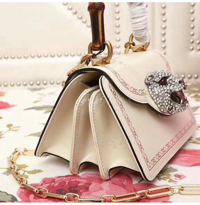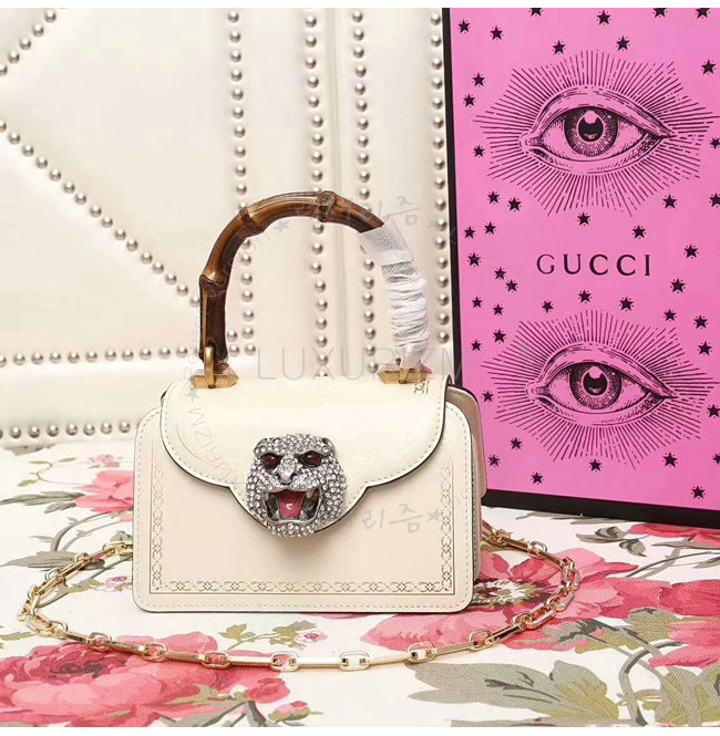 [스페셜오더]GUCCI-488667 9176 구찌 프린트 프레임 화이트 가죽 미니 탑 핸들 백
