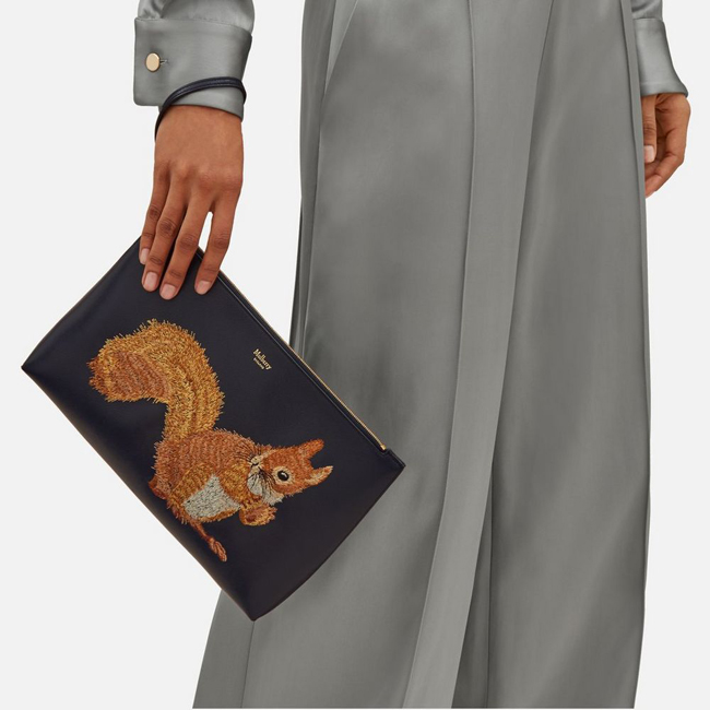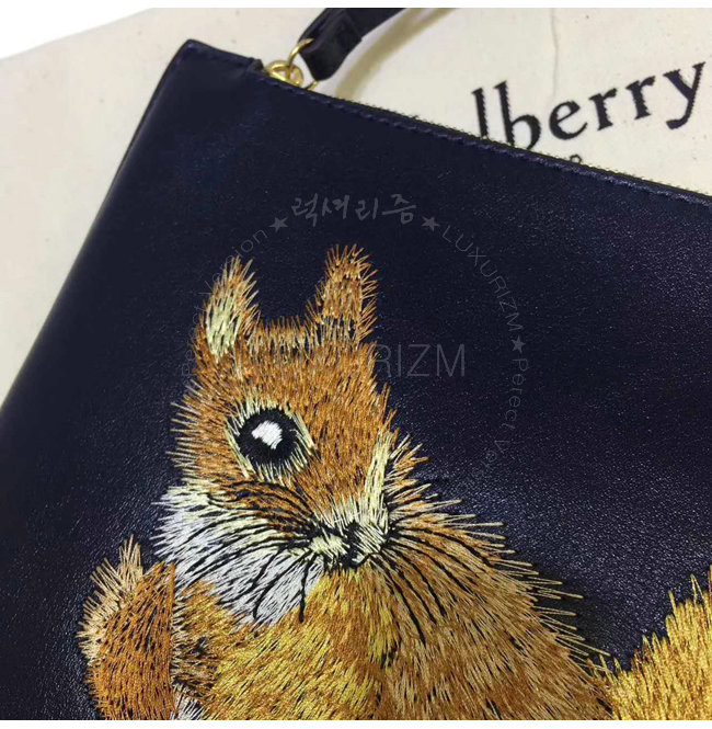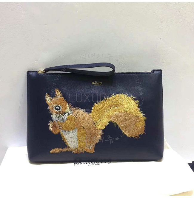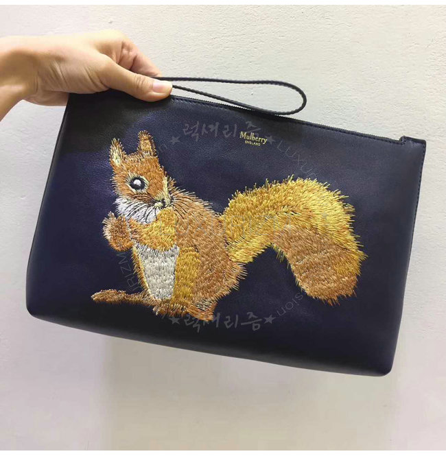 MULBERRY-RL5149 멀버리 스무스 카프스킨 다람쥐 자수 라지 파우치