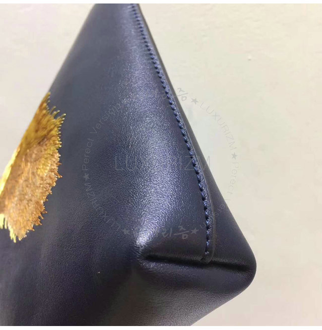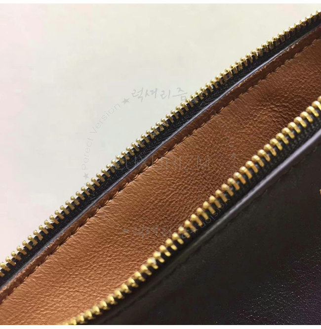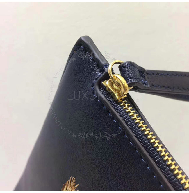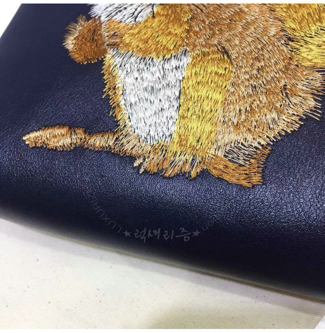 다람쥐 자수 가죽 지퍼 손목 스트랩 골드 메탈 콘트라스트 나파 라이닝.