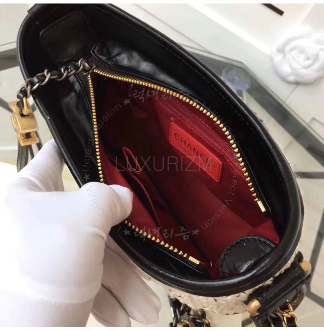 [스페셜오더]CHANEL-A91810 샤넬 빈티지 카프스킨 가브리엘 호보백 스몰 블랙 화이트