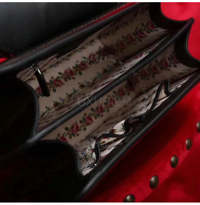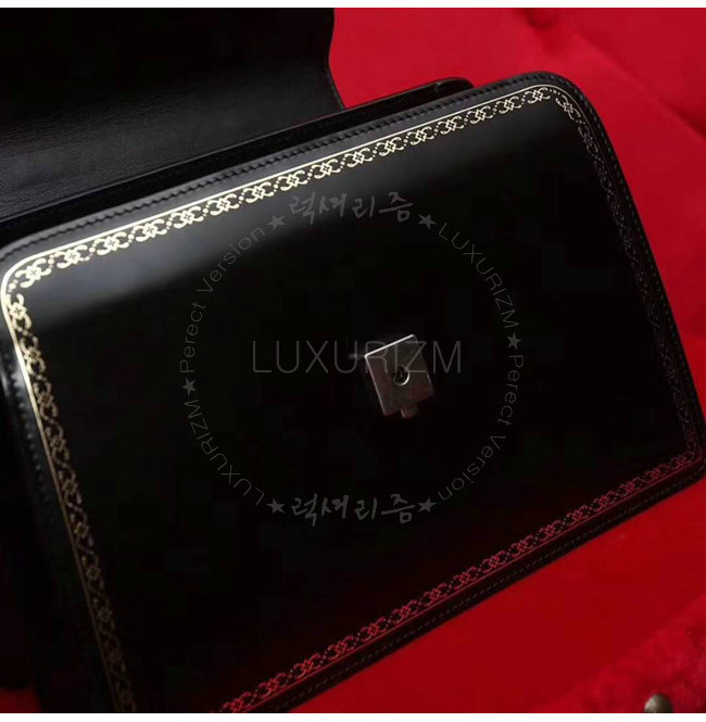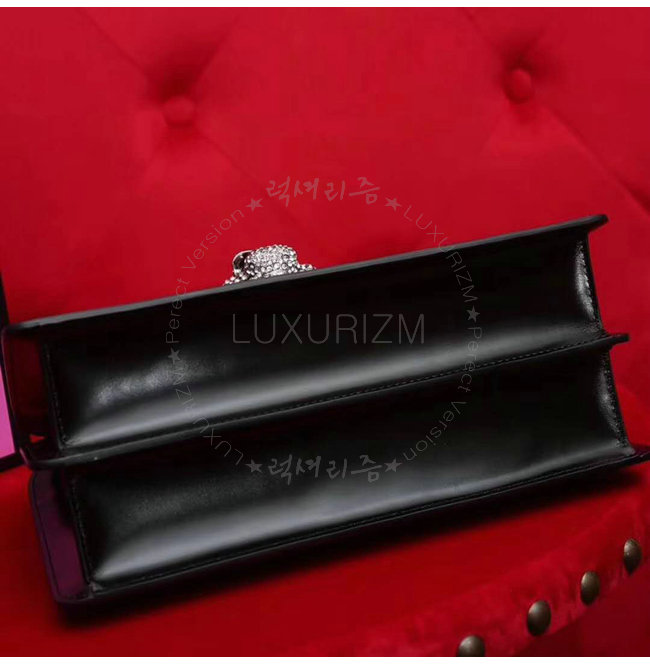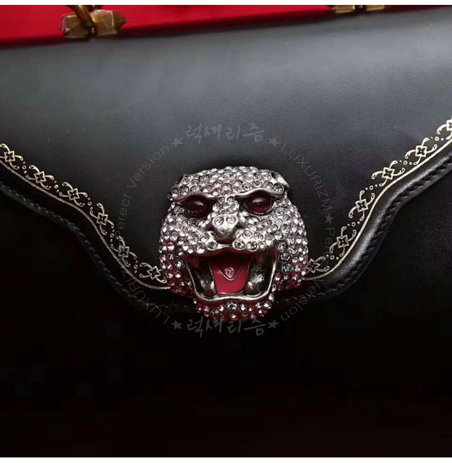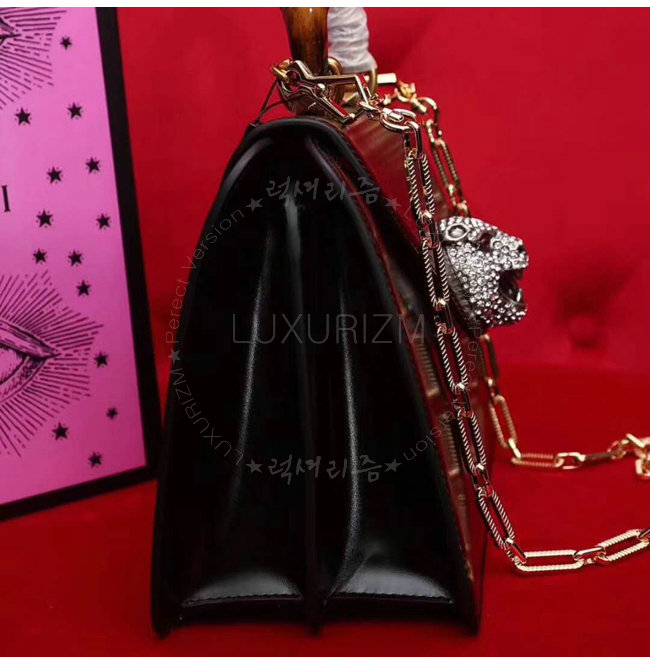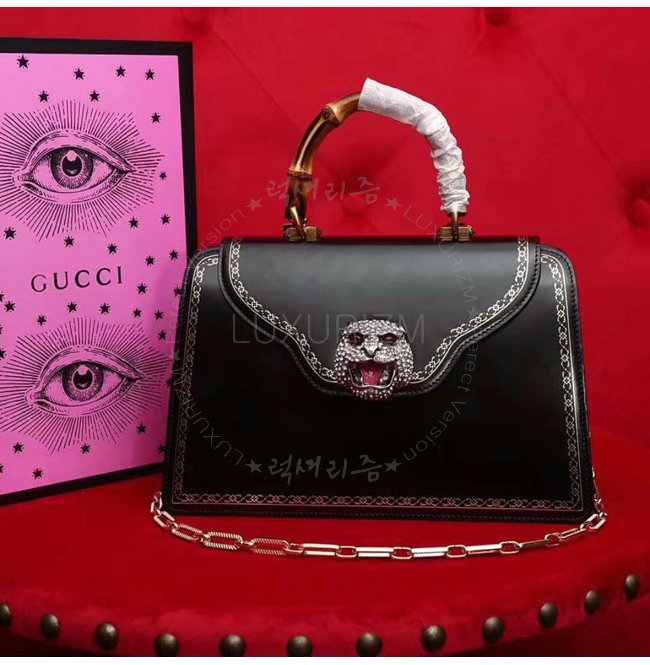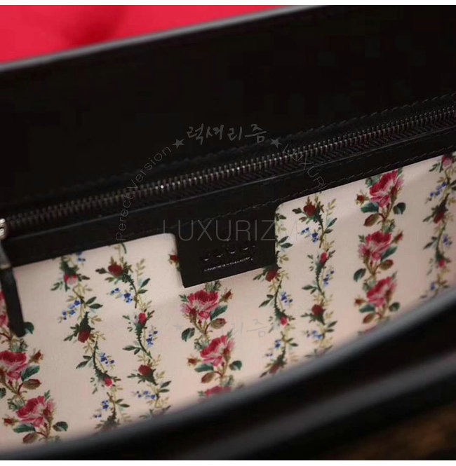 [스페셜오더]GUCCI-495881 8556 구찌 블랙 가죽 프레임 프린트 탑 핸들 백