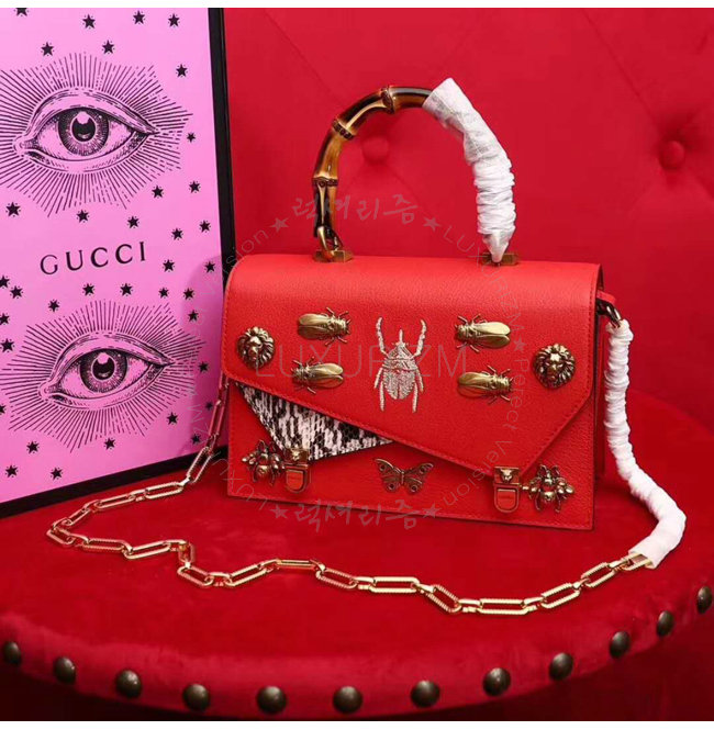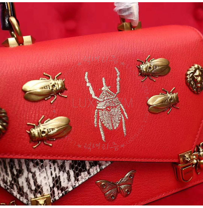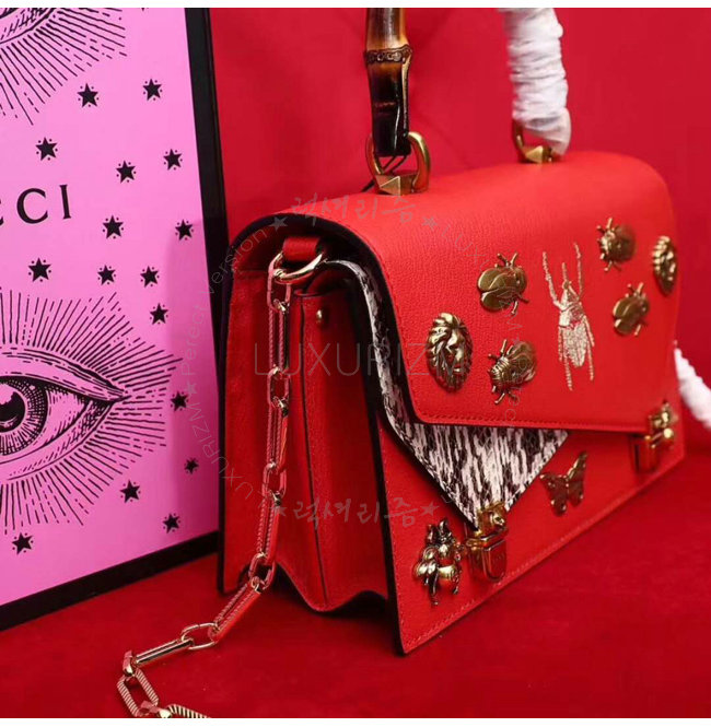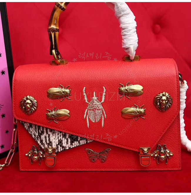[스페셜오더]GUCCI-488715 8240 구찌 애니멀 스터드 레드 가죽 탑 핸들 백