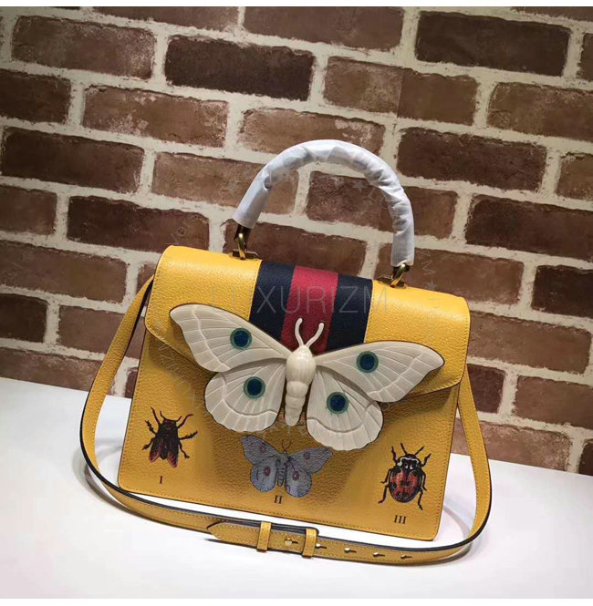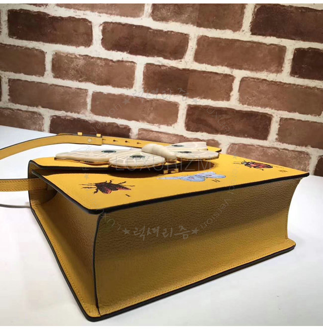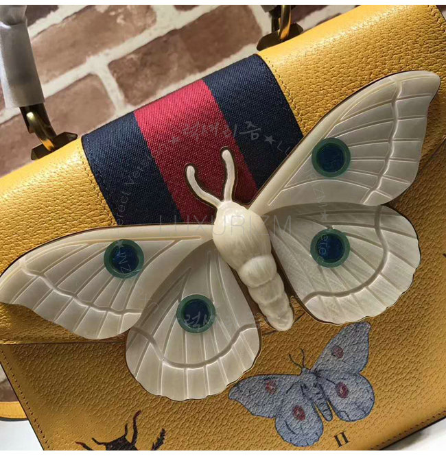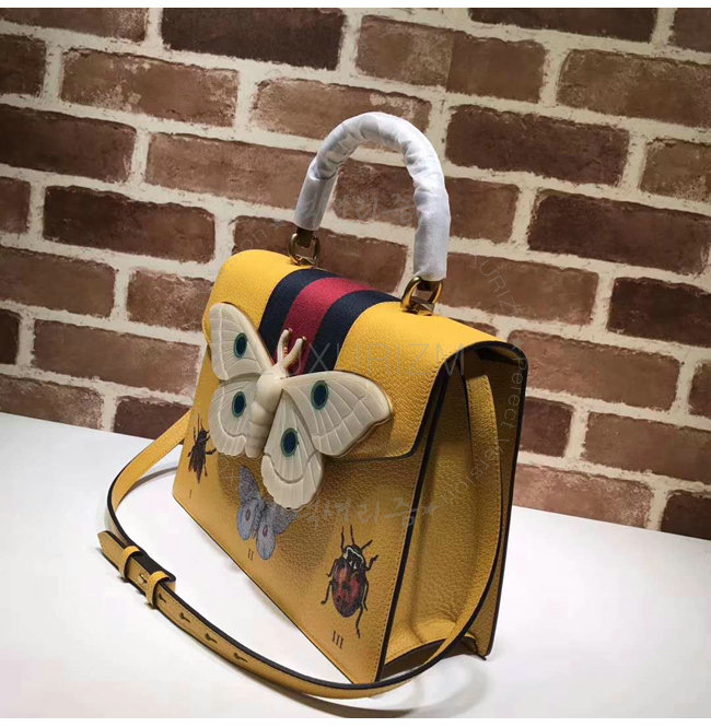 [스페셜오더]GUCCI-488691 7652 구찌 옐로우 가죽 나방 트리밍 탑 핸들 백