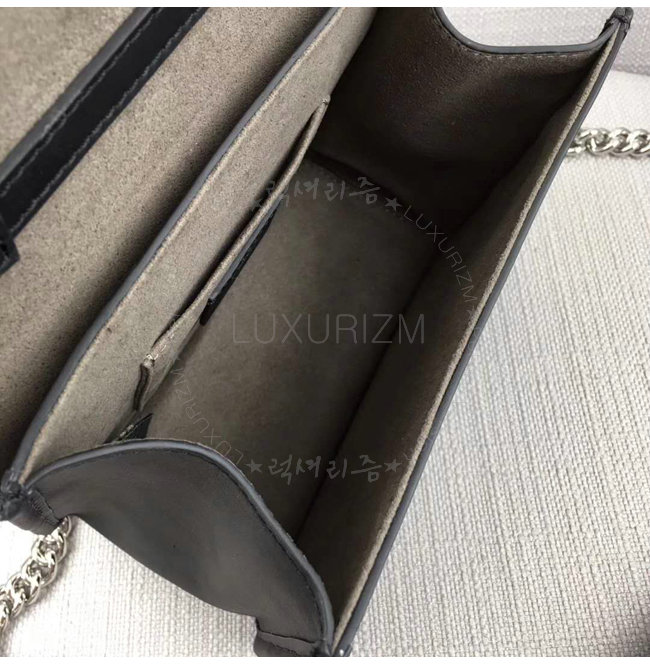 거싯과 플랫 포켓 1개. 슬라이딩 체인 롱 숄더 스트랩으로 크로스백 또는