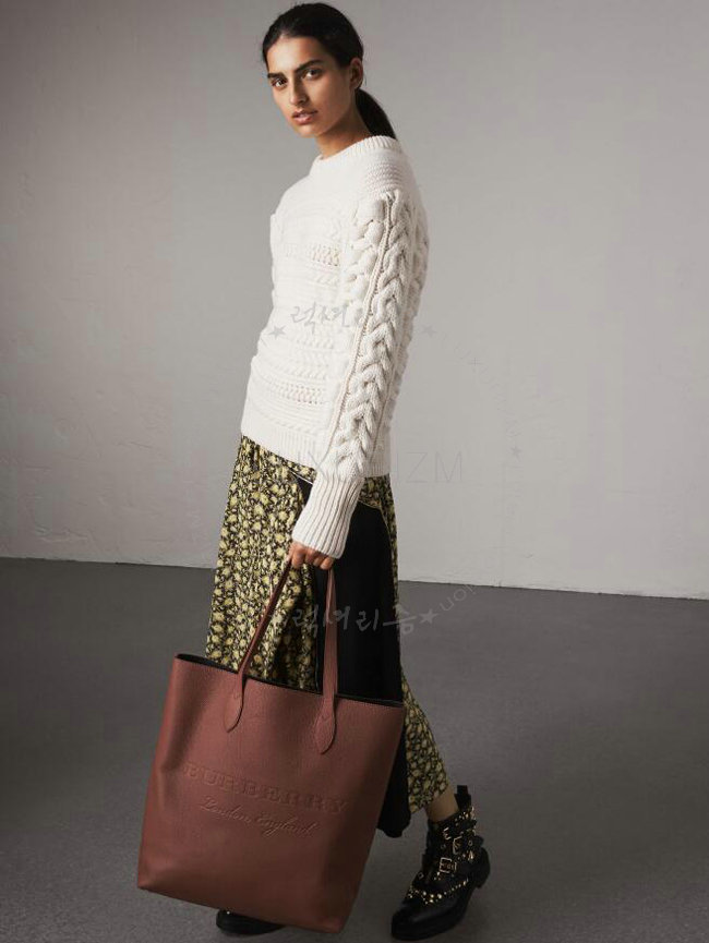 [스페셜오더]BURBERRY-40578781 버버리 송아지 가죽 미디엄 엠보싱 브라운 토트 백