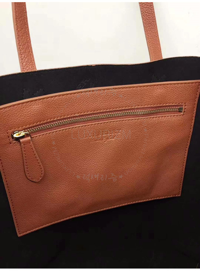 부드러운 질감의 송아지 가죽으로 제작된 조형적인 토트. 내부에 지퍼