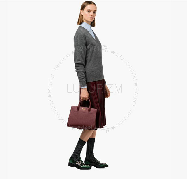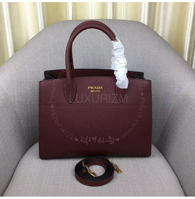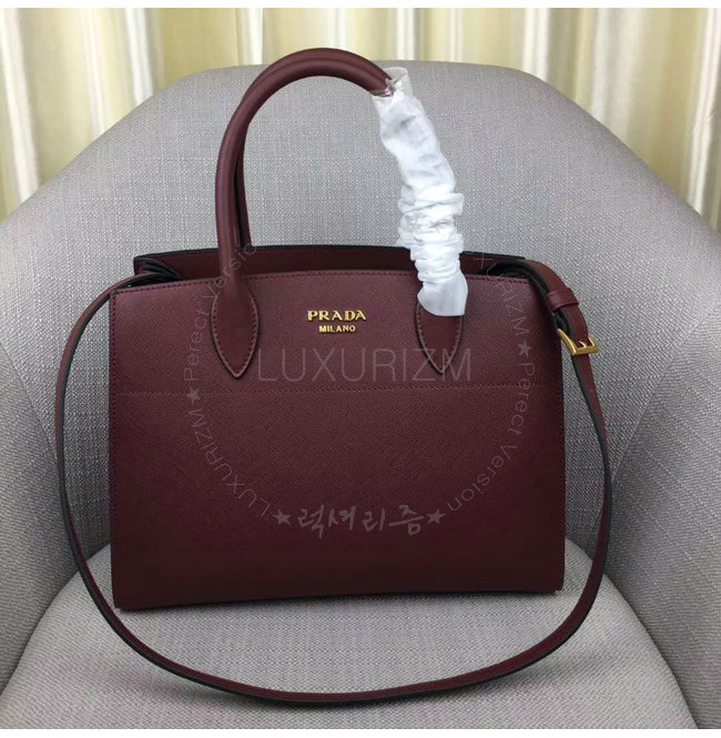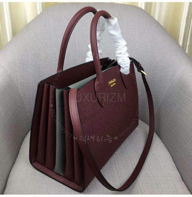 [스페셜오더]PRADA-1BA049 프라다 사피아노 가죽 와인 비블리오텍 토트 백