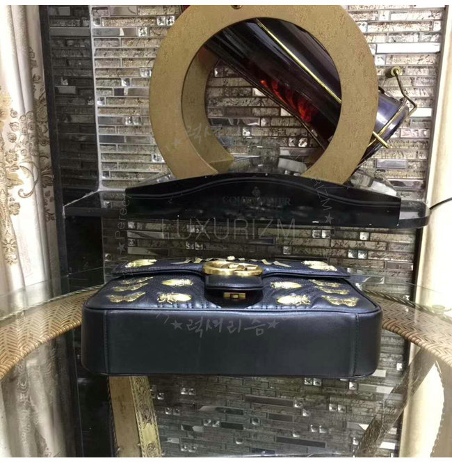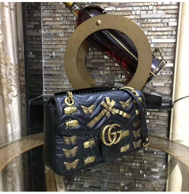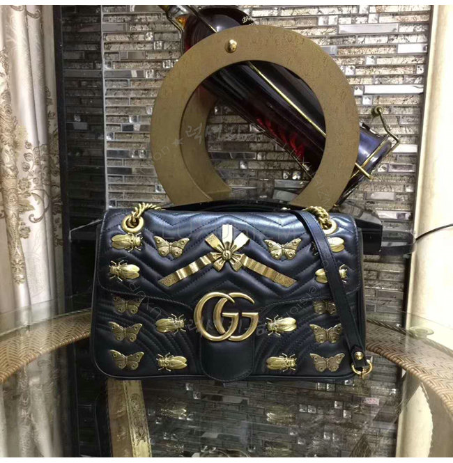 [스페셜오더]GUCCI-443496 1000 구찌 애니멀 스터드 블랙 마틀라세 가죽 미디엄 스트럭처드 체인 숄더백
