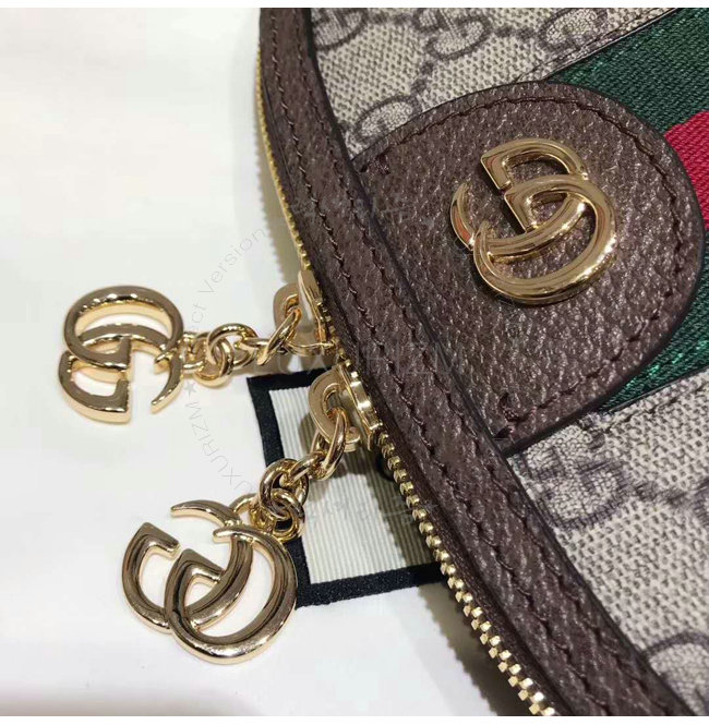 레드 Web 디테일골드 톤 메탈 장식 더블 G 더블 G 참 디테일의 지퍼 풀러 내부 지퍼