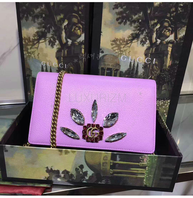 [스페셜오더]GUCCI-499782 5872 구찌 Vintage Broche 핑크 가죽 미니 체인 백