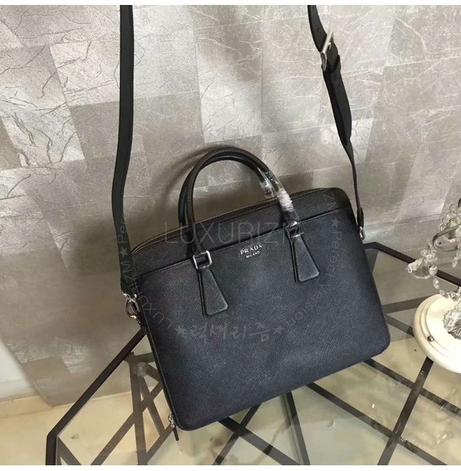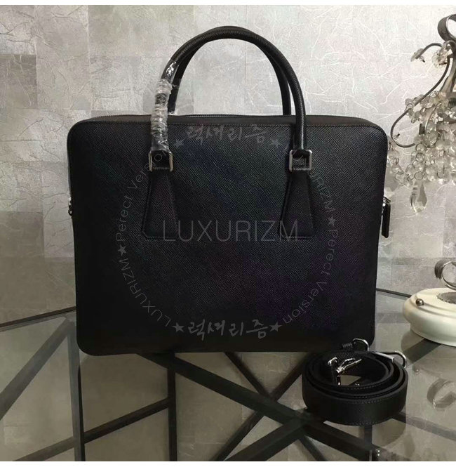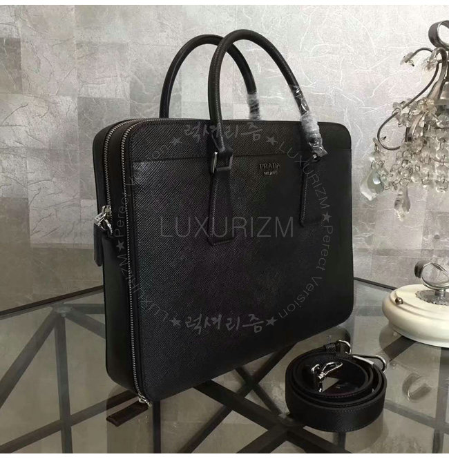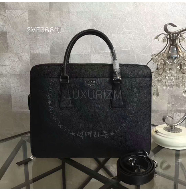 [스페셜오더]PRADA-2VE366 프라다 사피아노 가죽 블랙 브리프케이스