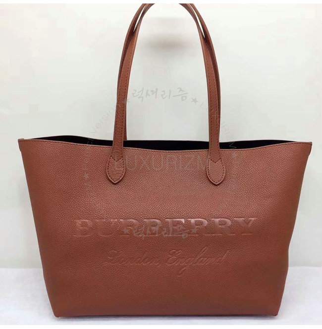 [스페셜오더]BURBERRY-40600961 버버리 송아지 가죽 체스트넛 브라운 라지 엠보싱 토트 백