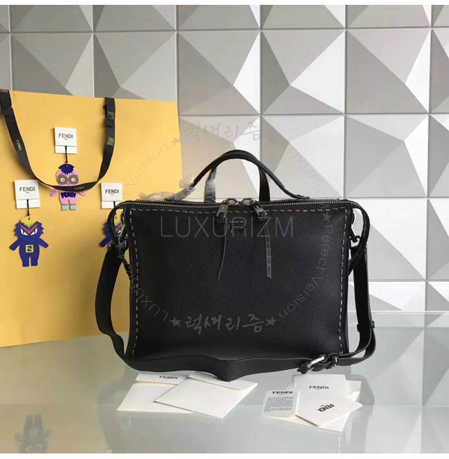 [스페셜오더]FENDI-7VA400 펜디 송아지 가죽 메탈릭 스티치 장식 블랙 메신저 백