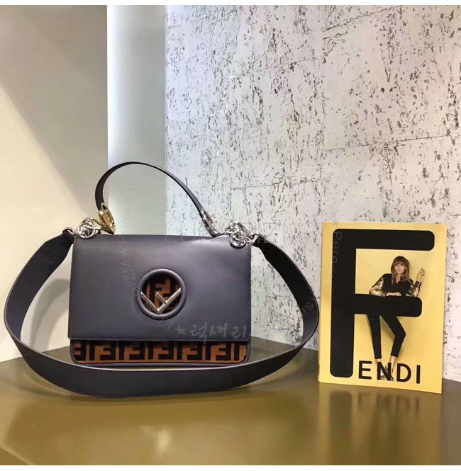 플랩과 새로운 펜디 로고가 장식된 백. 마그네틱 잠금장치.내부 거싯과 플랫포켓 1개.