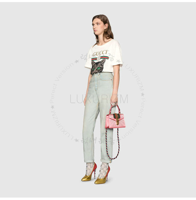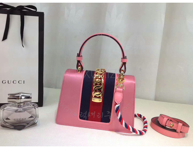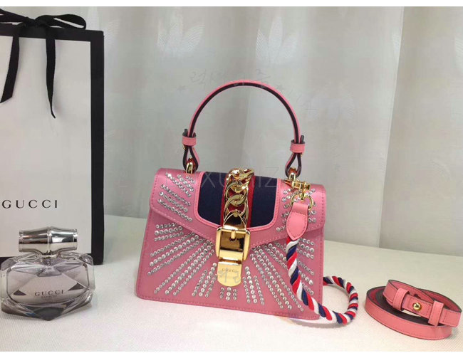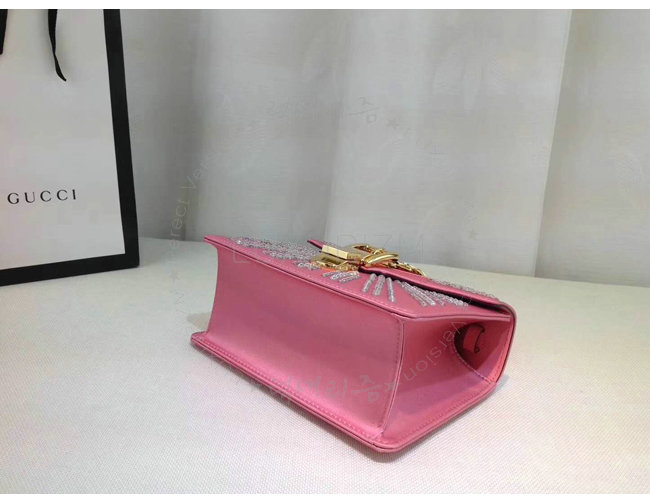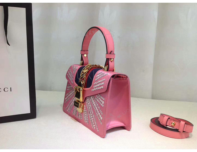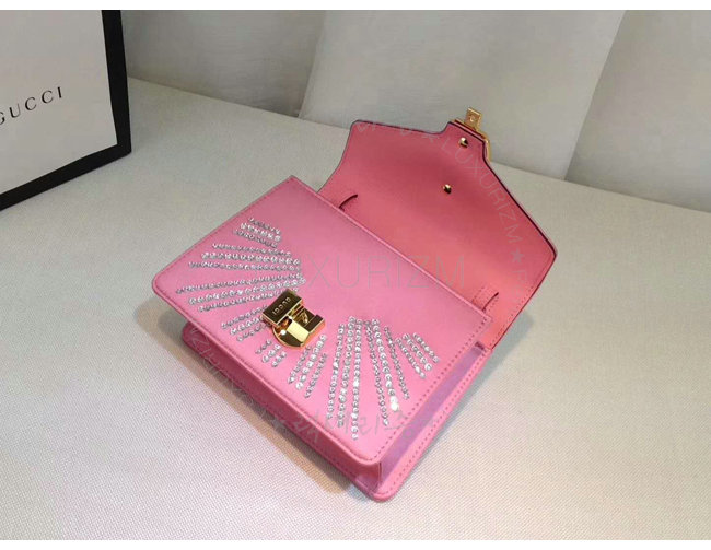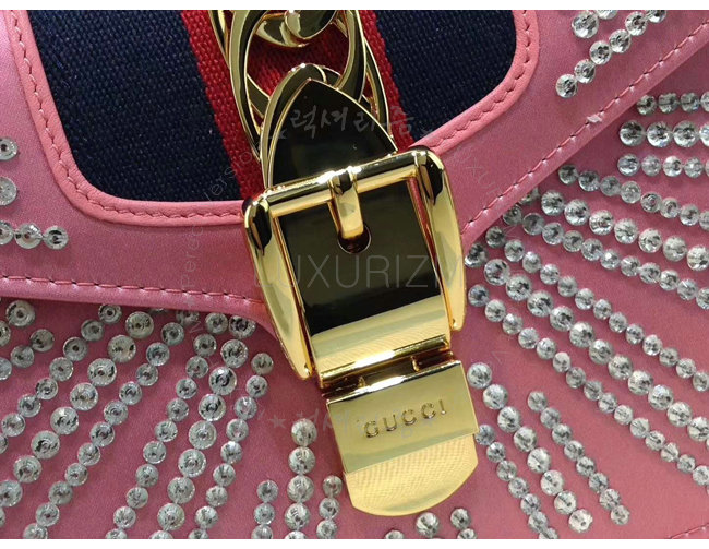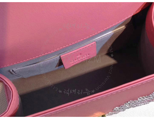 [스페셜오더]GUCCI-470270 6666 구찌 Sylvie 핑크 가죽 크리스탈 장식 미니 백
