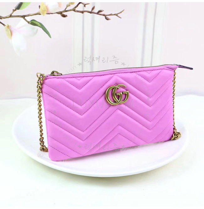 GUCCI-443447 5554 구찌 GG Marmont 핑크 마틀라세 가죽 미니 체인 백