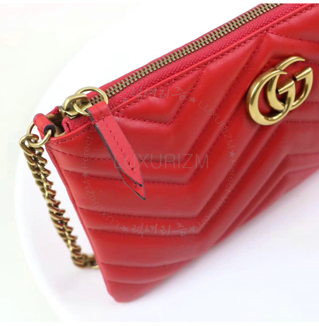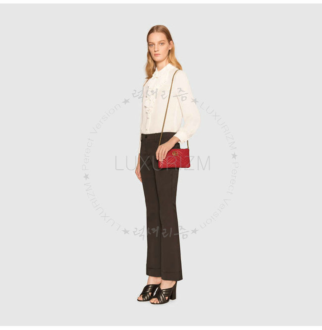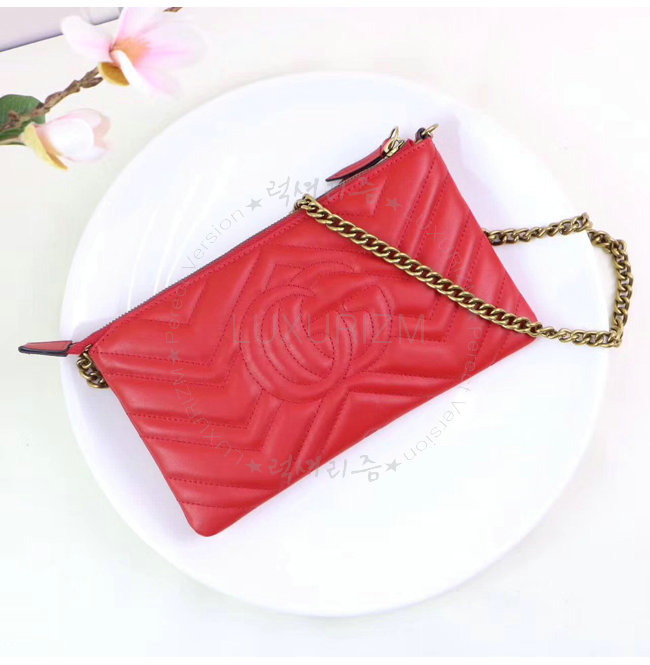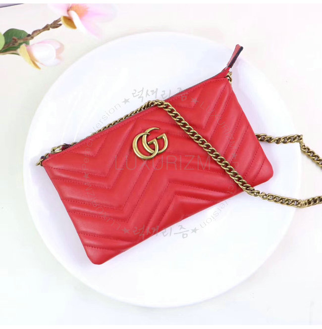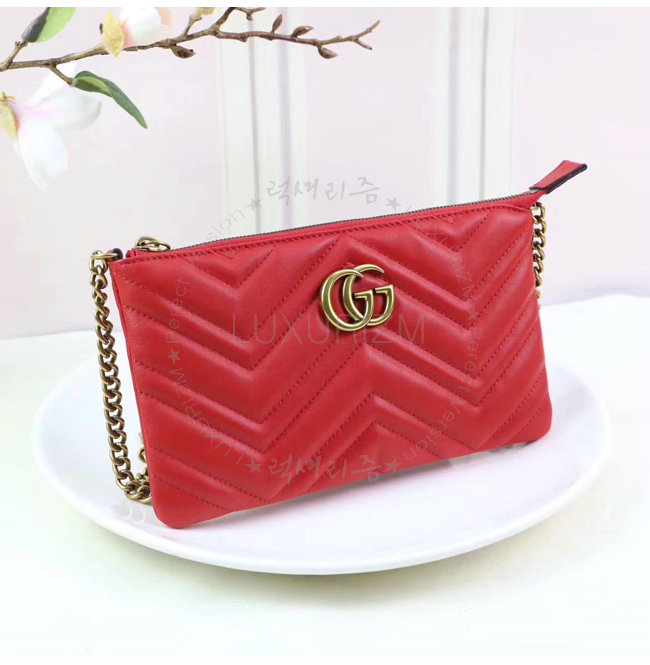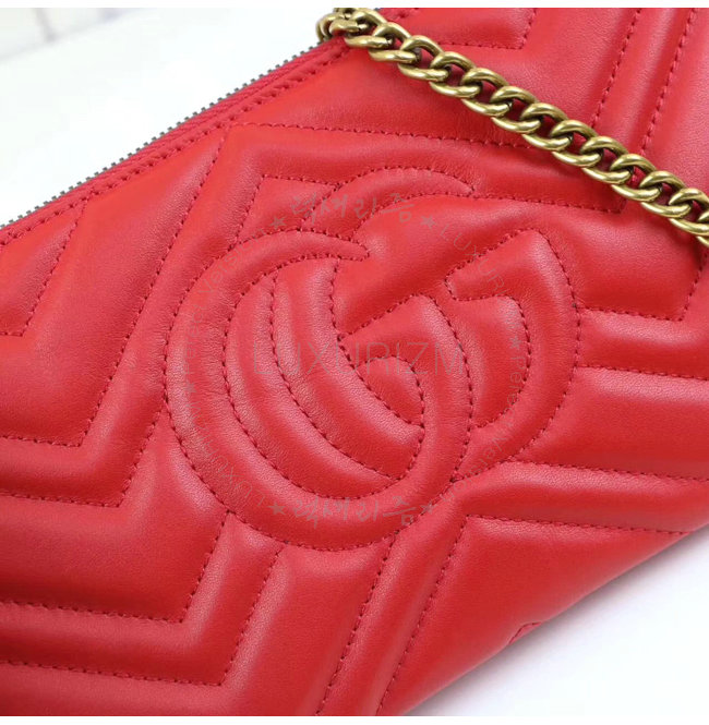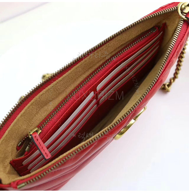 GUCCI-443447 6433 구찌 GG Marmont 레드 마틀라세 가죽 미니 체인 백