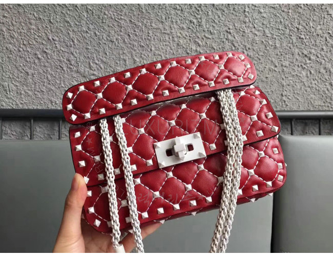 [스페셜오더]VALENTINO-PW2B0123 발렌티노 송아지 가죽 레드 스몰 프리 락스터드 스파이크 체인 백