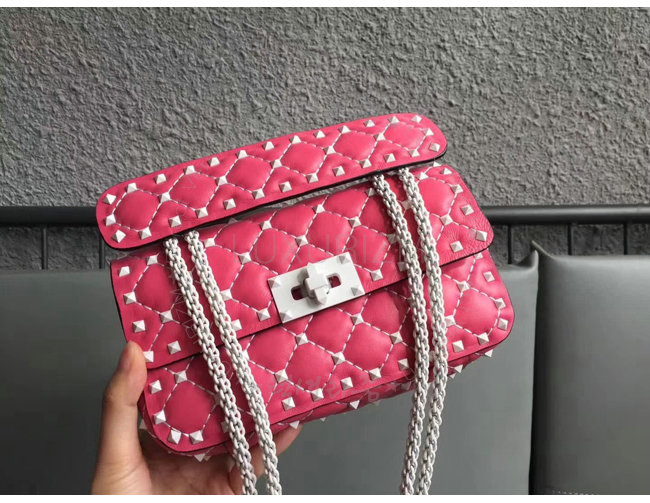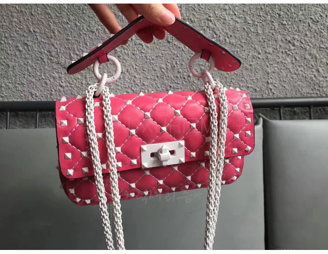 [스페셜오더]VALENTINO-PW2B0123 발렌티노 송아지 가죽 핑크 스몰 프리 락스터드 스파이크 체인 백