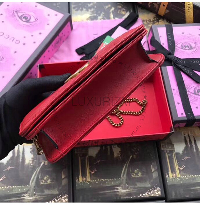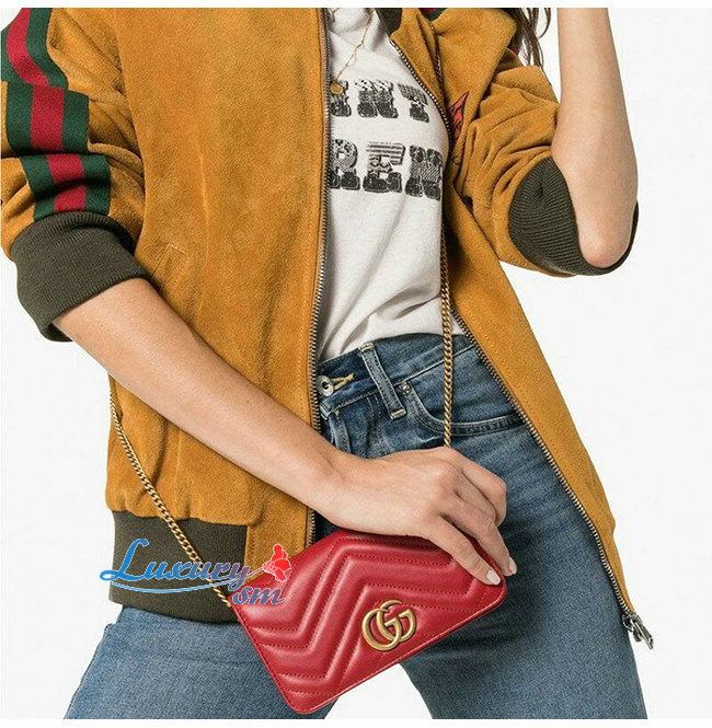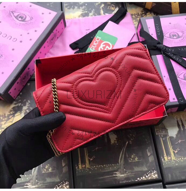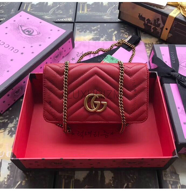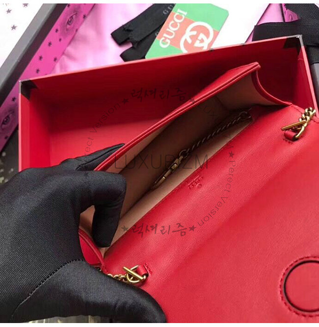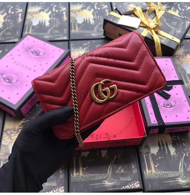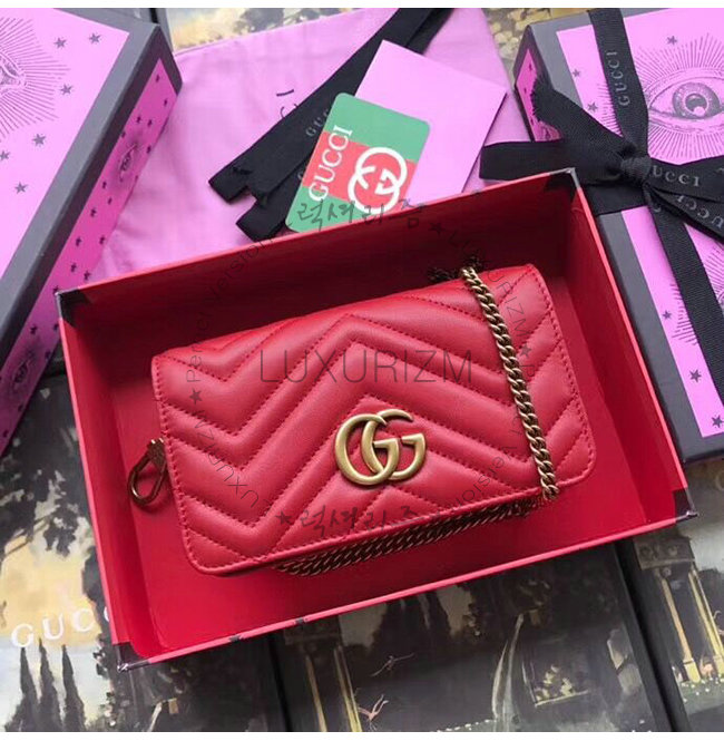 [스페셜오더]GUCCI-488426 6433 구찌 GG Marmont 레드 마틀라세 가죽 미니 백