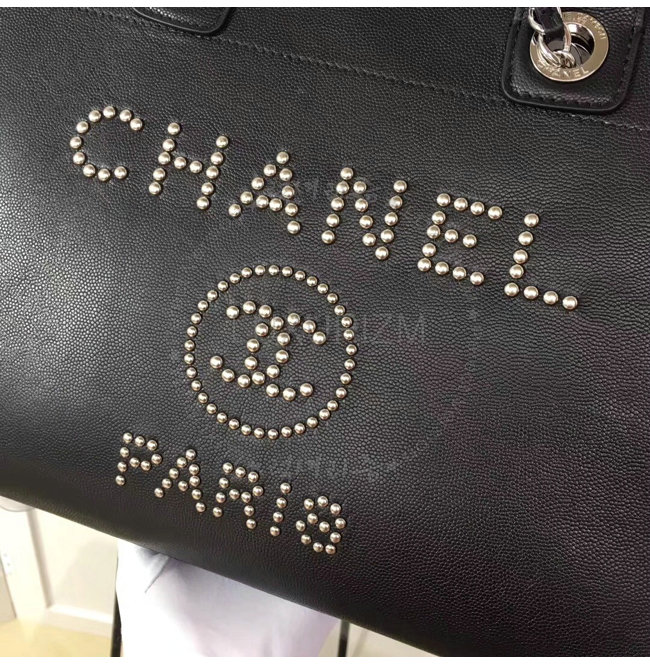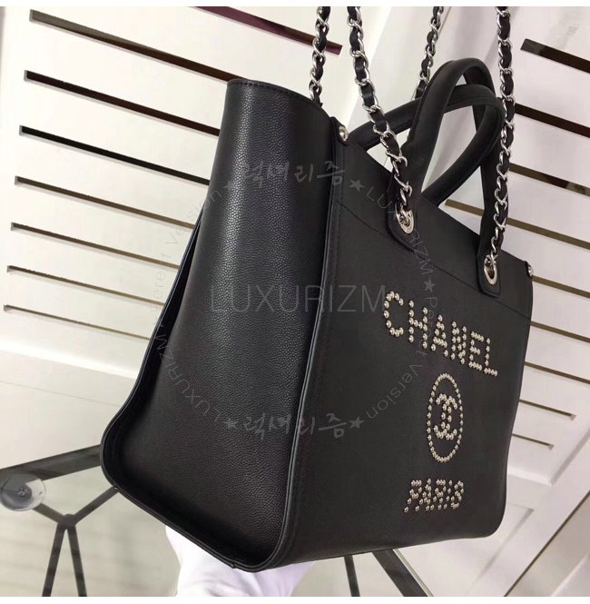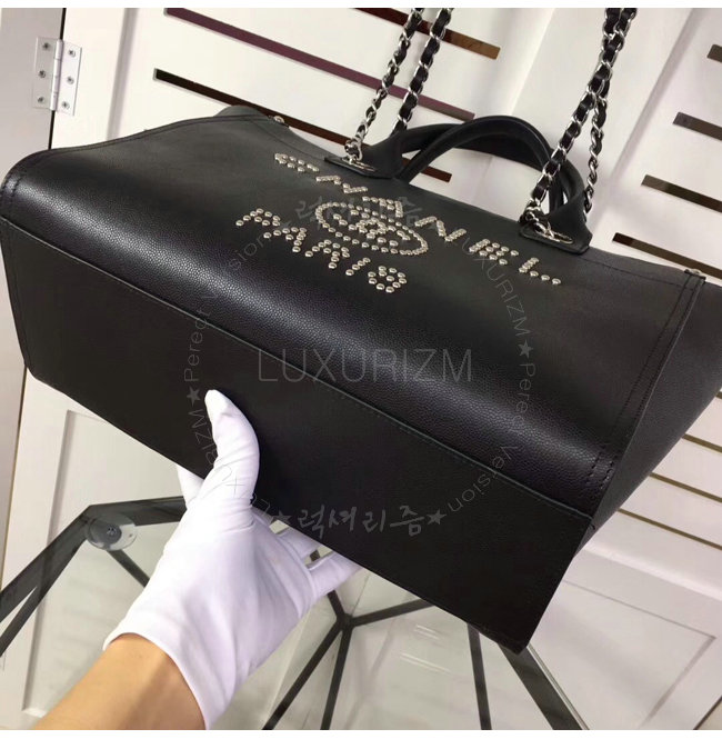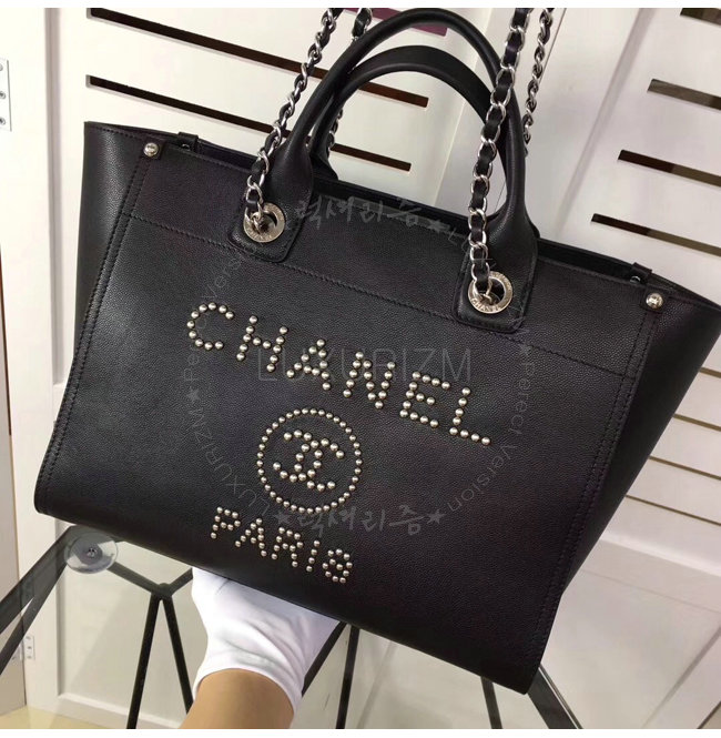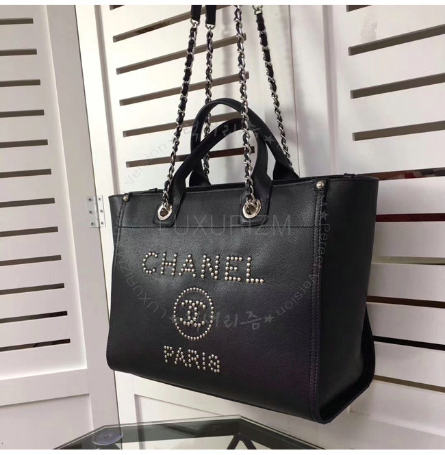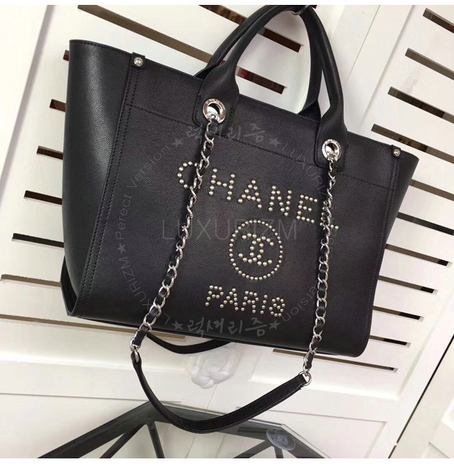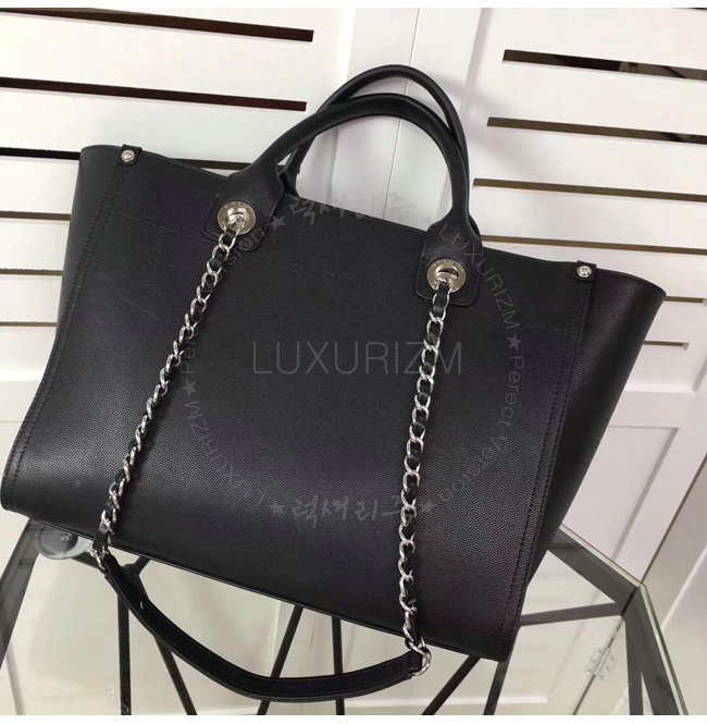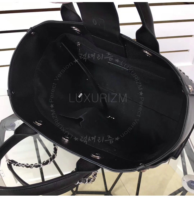 [스페셜오더]CHANEL-A57069 샤넬 그레인드 카프스킨 실버 메탈 블랙 미디엄 쇼핑 백