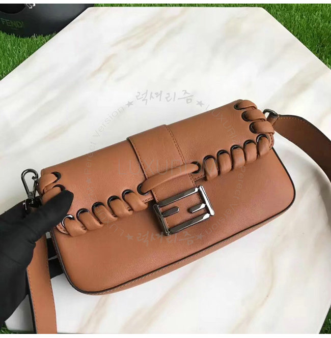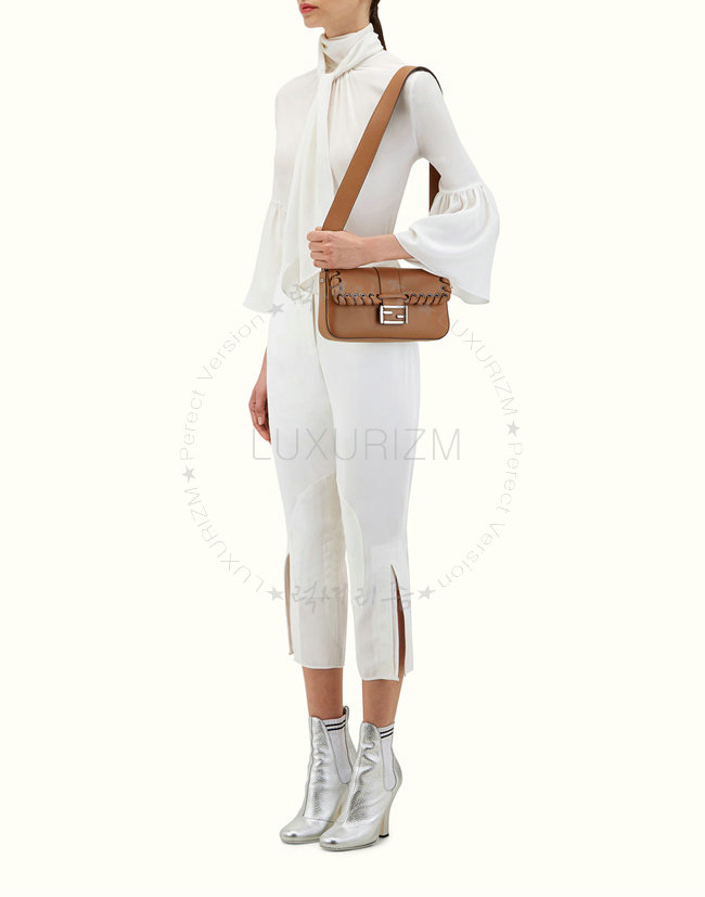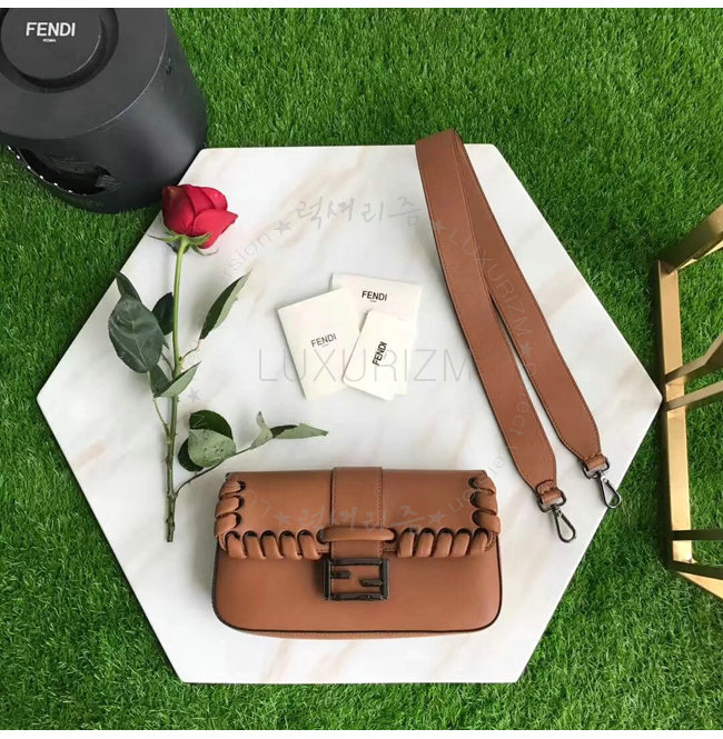 [스페셜오더]FENDI-8BR6008 펜디 송아지 가죽 톤온톤 위브 장식 브라운 바게트 백