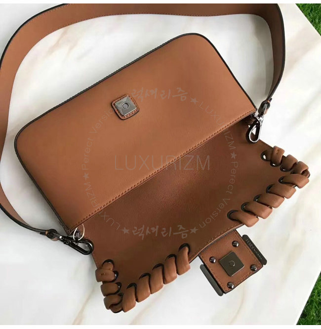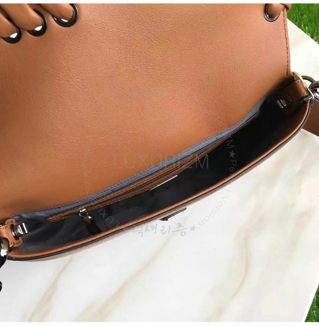 잠금장치.길이조절 및 탈부착 가능한 쇼트 숄더 스트랩.지퍼식 내부포켓과 거울.루테늄 처리된 엣지.
