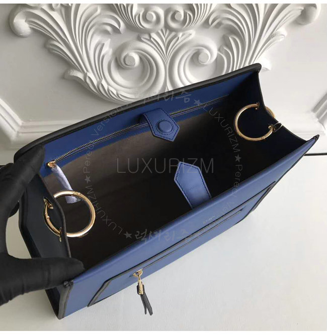 백.송아지 가죽 소재 블랙 컬러의 엣지 장식.팔라듐 피니싱이 믹스된 메탈장식.