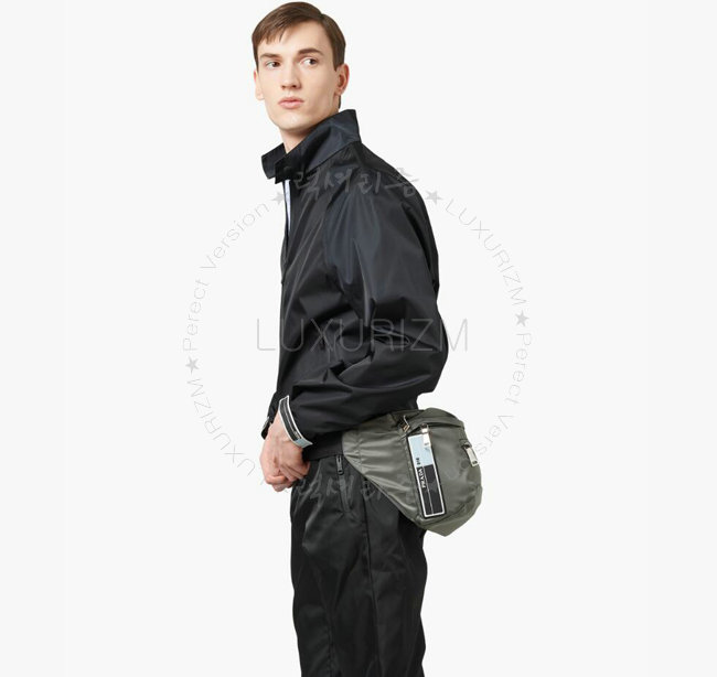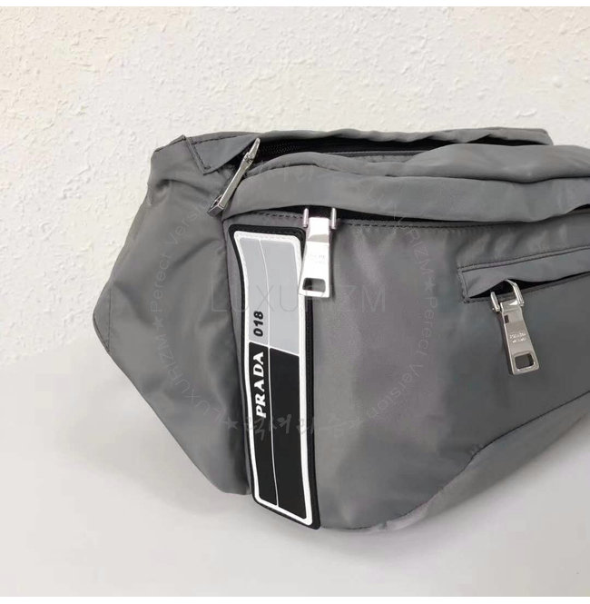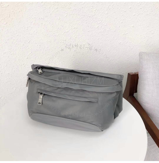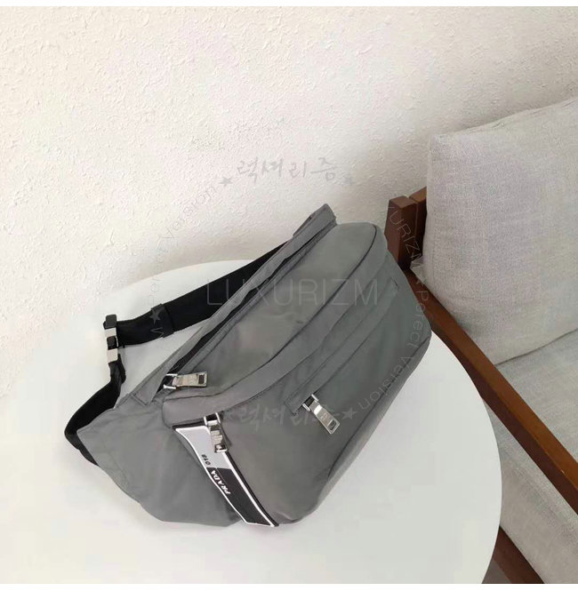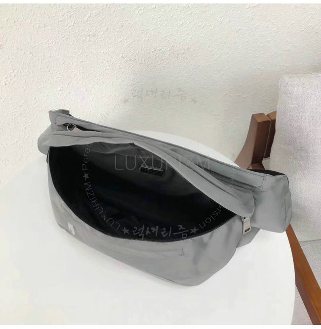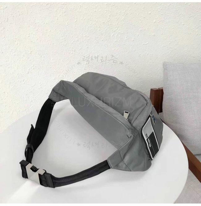 [스페셜오더]PRADA-2VL004 프라다 나일론 페브릭 고무 외부 로고 그레이 벨트 백