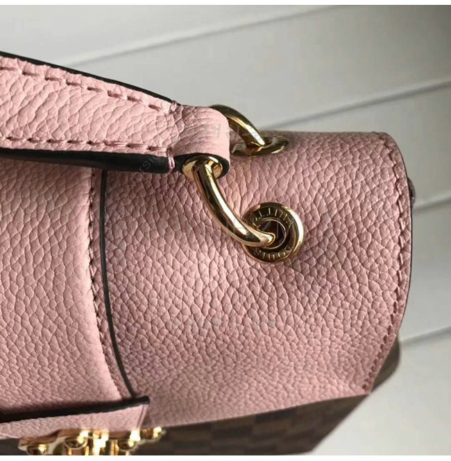 다미에 에벤 캔버스 및 결이 촘촘한 소가죽 텍스타일 안감 결이 촘촘한 소가죽