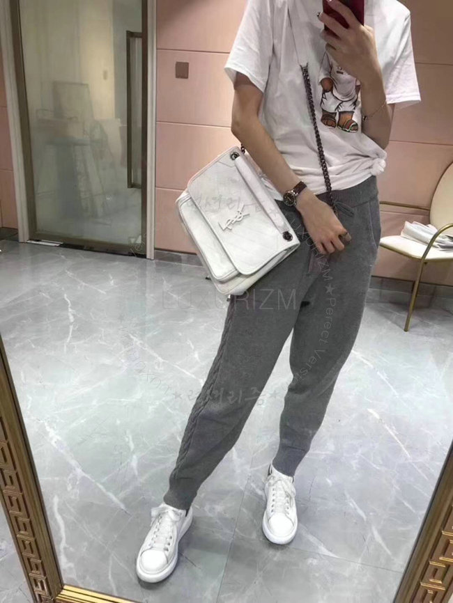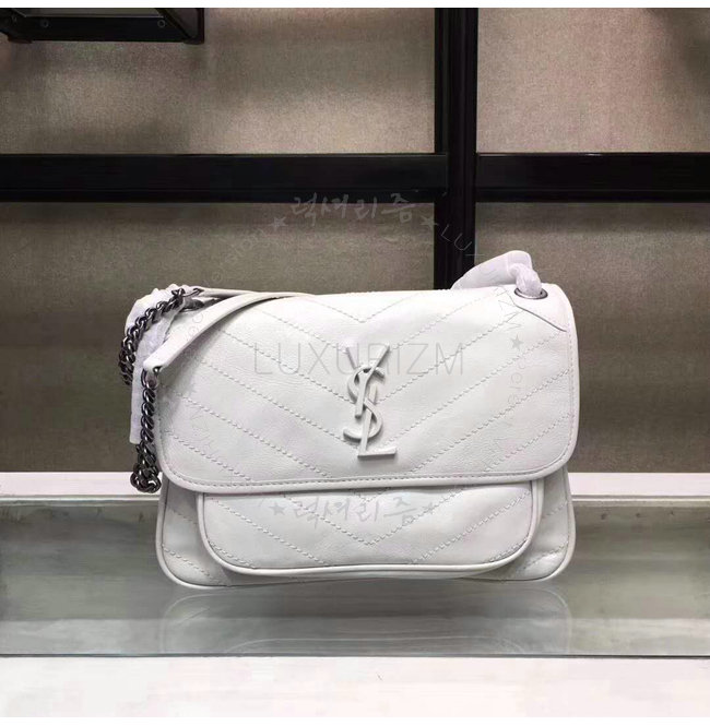 [스페셜오더]SAINT LAURENT-498894 생 로랑 송아지 가죽 크링클드 퀼티드 펄 화이트 미디움 니키 체인 백