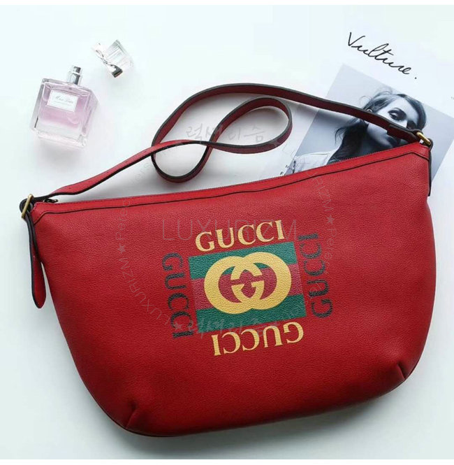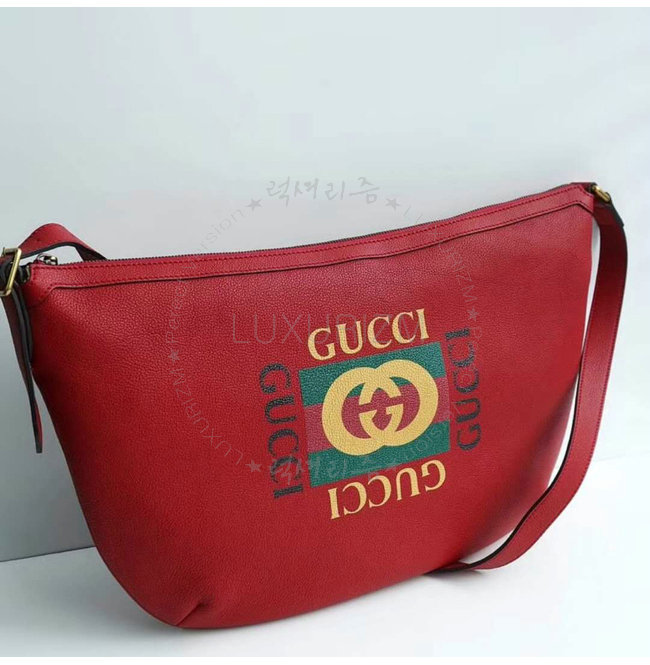 [스페셜오더]GUCCI-523588 6461 구찌 레드 가죽 구찌 프린트 반달 모양 호보백