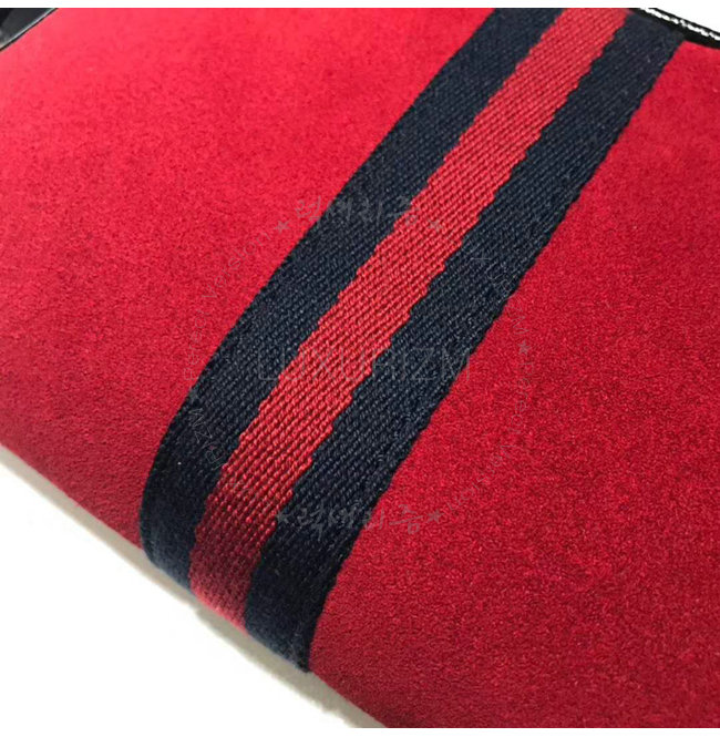 페이던트 가죽 트리밍 디테일의 스웨이드 블루/레드 Web디테일 골드톤 메탈장식 메탈 더블G 장식의