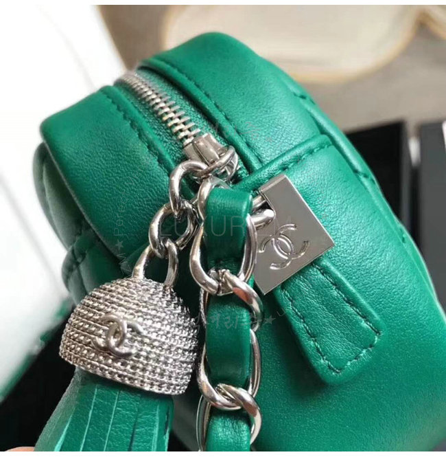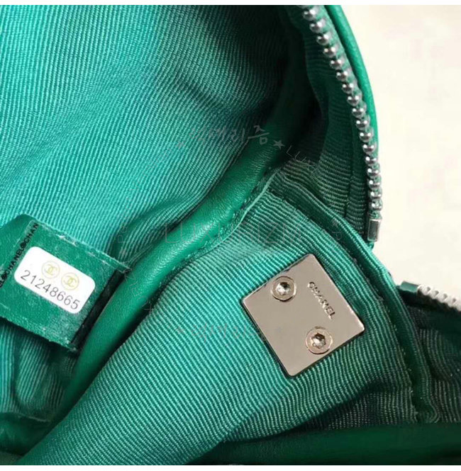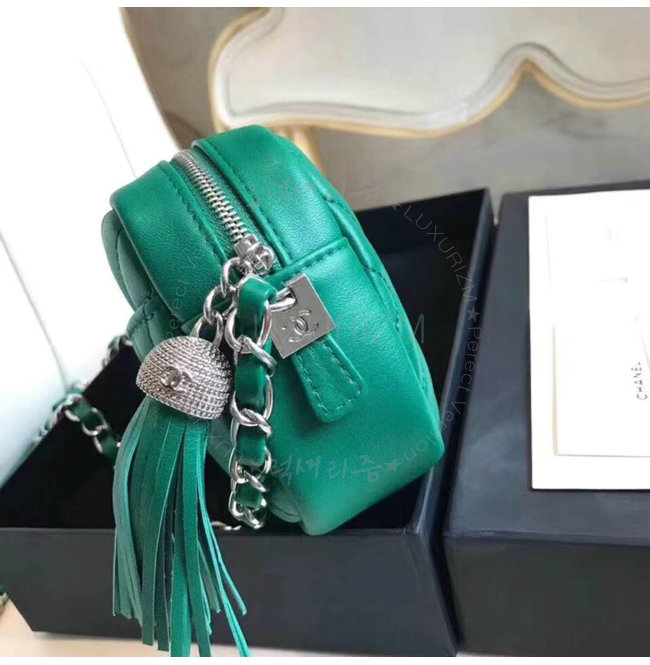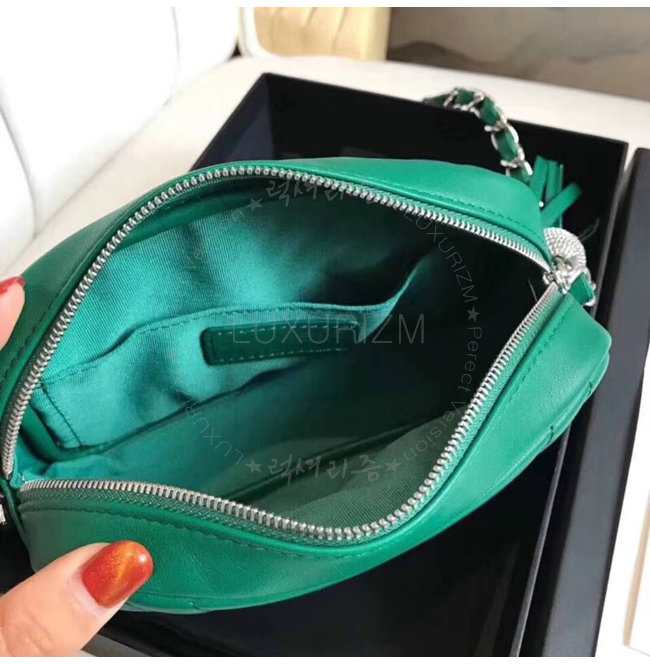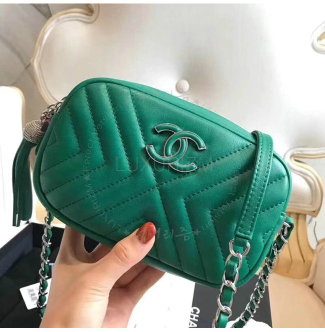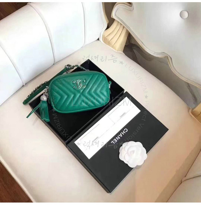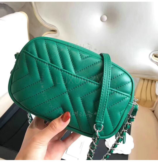 [스페셜오더]CHANEL-A57617 샤넬 카프스킨 실버 메탈 그린 카메라 케이스