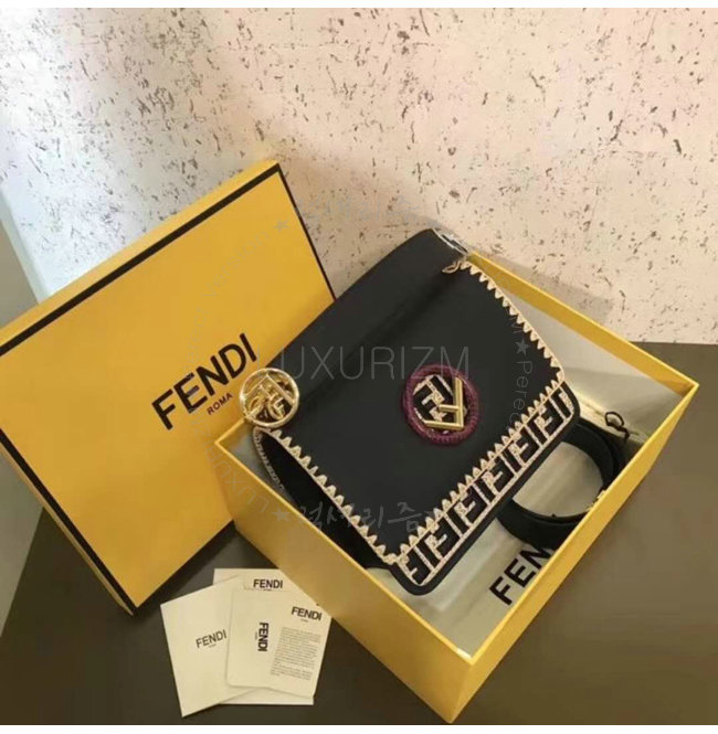 [스페셜오더]FENDI-8BT284 펜디 송아지 가죽 더블 F 패턴 자수 장식 블랙 캔 아이 에프