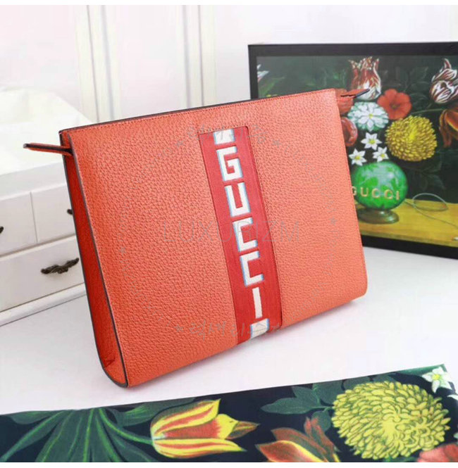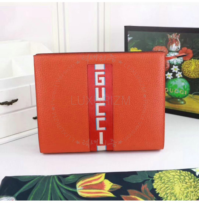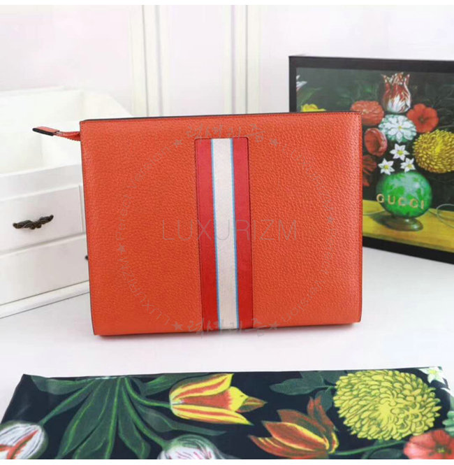 [스페셜오더]GUCCI-475316 7572 구찌 오렌지 가죽 스트라이프 파우치